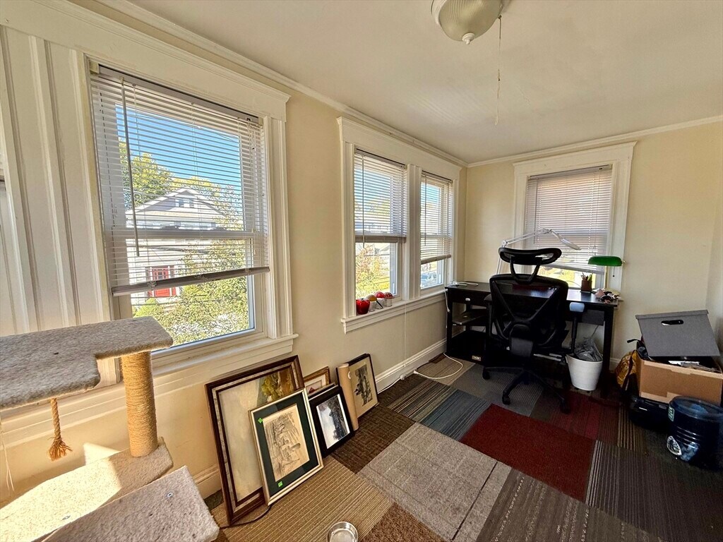 Available 11/15,12/1,1/1 or anytime in-between! Bright and spacious second floor 3 bedroom,1 bathroom apartment in Central Watertown offering incredible versatility with a flexible layout - use as a full 3 bedroom with office,or configure as 2 bedrooms with 2 office spaces to suit your work-from-home needs. Plus,the enclosed front porch provides additional bonus room possibilities. This apartment features a beautifully updated kitchen with new appliances and a charming eat-in breakfast nook for casual dining. Enjoy exceptional outdoor living with a huge fenced-in yard ideal for entertaining or pets,plus your own private top-floor balcony for morning coffee. Abundant natural light flows throughout the home,creating a warm and inviting atmosphere. Convenient amenities include basement laundry facilities and 2 off-street parking spaces. Prime Central Watertown location places you just minutes from Arsenal Yards shopping and dining,plus easy access to the Charles River MLS# 73442492