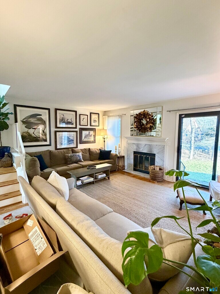 Call for Availability - Coveted courtyard condo in South Wilton! 2 bedroom, 2 1/2 bath unit with a large private garage and carport. Enjoy your morning coffee in the breakfast nook with courtyard views. The living/dining room area has sliders to a private patio, where you can BBQ and host guests. Enjoy your living room fireplace on chilly fall and winter nights. Open stairs lead to your master suite, with two walk-in closets and a full bathroom. The second bedroom has its own private full bathroom and walk-in closet. The lower level is unfinished and has an abundance of storage space. Beautifully landscaped grounds with a swimming pool and tennis/pickleball courts. Walk to stores, restaurants, gym, doctors' offices, etc . 5 minutes to I-95, and Route 7 connector/Merritt Parkway. Close to train lines! MLS# 24159092