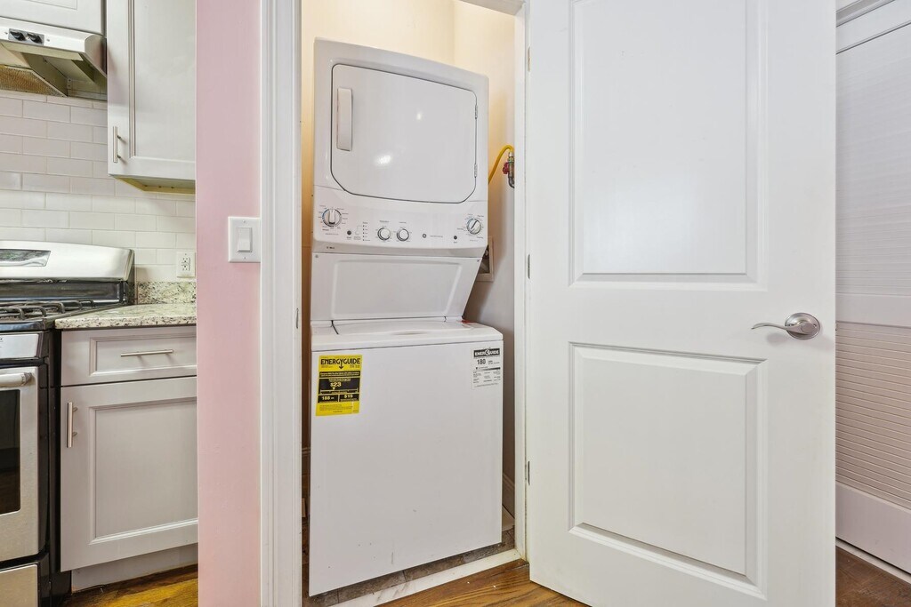 Washer and dryer in unit. Move right in to this cozy ground floor apartment located on a quiet street. With easy access to the light rail station and other transportation to and from New York. This apartment features 1 bed 1 bath, washer dryer in/ unit . Hot water is included in the rent.