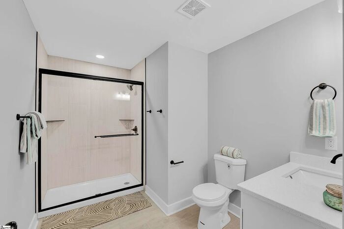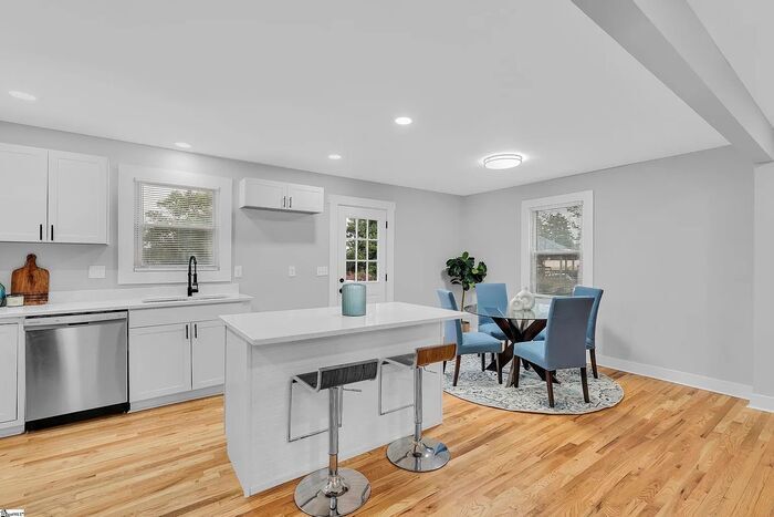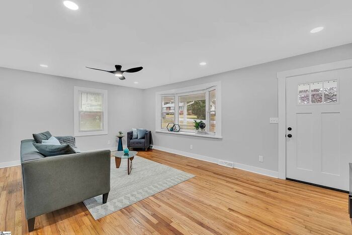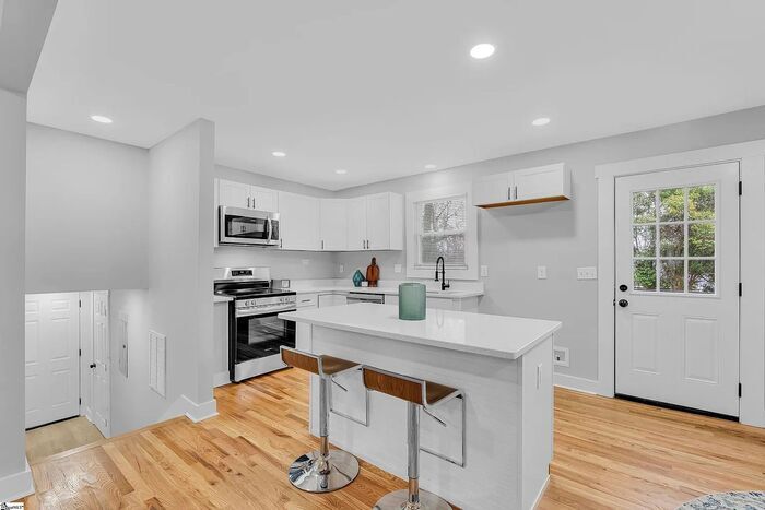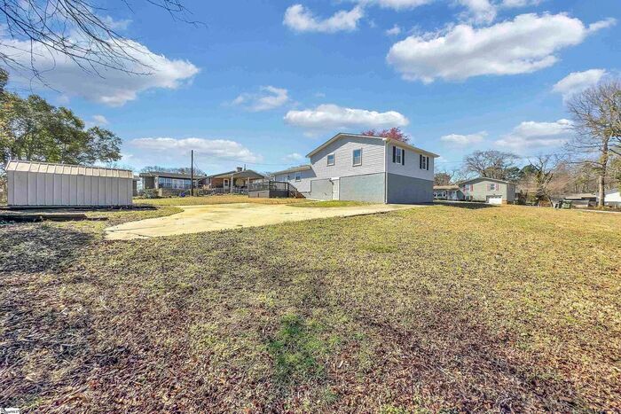 Step into this fabulously renovated split-level gem, perfectly perched on just under half an acre! Boasting 4 bedrooms and 2 chic bathrooms, this home is the ultimate playground for those who love to entertain and bask in contemporary comforts with a level lot, extra parking and plenty of storage! As you enter, be greeted by a sun-drenched, open-concept living space, where a grand bay window floods the room with natural light. The sleek, eat-in kitchen is a culinary enthusiast's dream, featuring gleaming quartz countertops, a sprawling island with ample seating, top-of-the-line stainless steel appliances, and abundant prep and storage space. Step through the kitchen door onto an expansive deck that overlooks a vast backyard - your personal canvas for alfresco dining, summer soirees, or simply soaking up the sun. Ascend just a few steps to the second floor to discover three bedrooms. The two secondary rooms share a stylishly updated hall bath, complete with a tub-shower combo perfect for unwinding after a long day. The primary suite is a serene retreat, boasting a private, large and modern bathroom with a tile and glass-enclosed shower and a quartz vanity. The lower level is a versatile haven, presenting the fourth bedroom adorned with a cozy fireplace and a spacious walk-in closet. This area is flexible space - be it a home office, playroom, fitness studio, or a laid-back den. Conveniently located on this floor are a sizable laundry room and direct access to the garage, which features a handy yard door and storage nook. Throughout the home, you'll find a harmonious blend of hardwood, luxury vinyl plank, and tile flooring, complemented by contemporary lighting fixtures and a neutral color palette that provides a fresh, airy ambiance. The outdoor space is a dream come true for enthusiasts of all kinds. Partially fenced for privacy, the expansive yard offers ample driveway parking. An outdoor shed stands ready to house your gardening tools, while the vast expanse invites visions of playsets, firepits, gardens, and beyond! Situated mere minutes from major interstates, shopping hubs, dining delights, and top-tier medical facilities, this location is a commuter's paradise. A swift 10-minute drive lands you in the heart of downtown Greenville, at Prisma Greenville Memorial Hospital, or the bustling Donaldson Center. This home isn't just a place to live - it's a lifestyle. Seize the opportunity to rent this trendy haven and experience the perfect fusion of mid-century charm and modern sophistication. Contact us to schedule a showing.