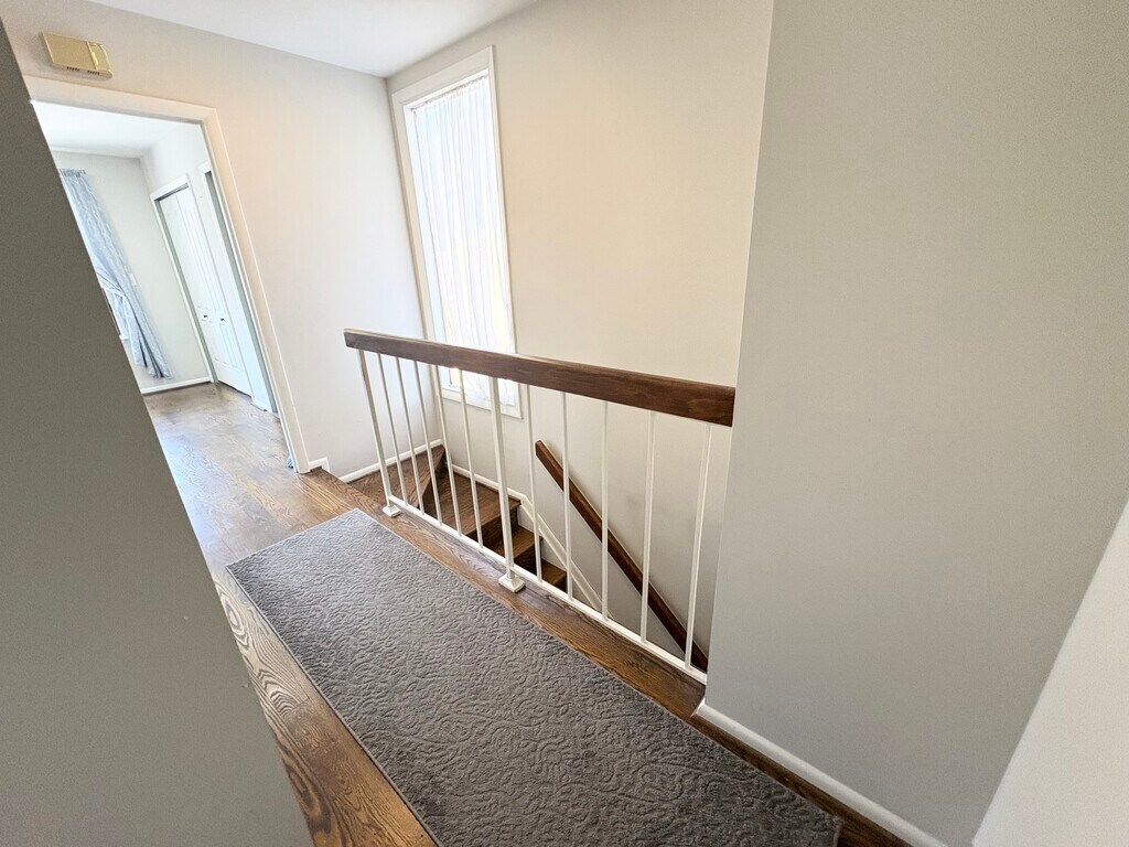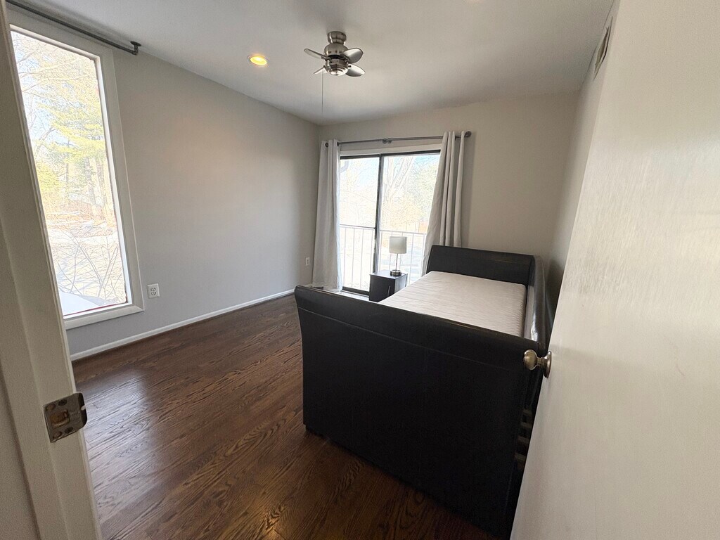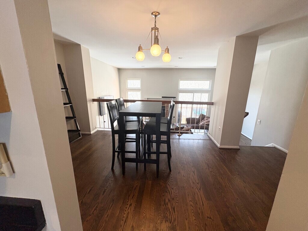 Welcome to this expansive three-bedroom townhome, featuring a den and two and a half bathrooms, situated within the Woottons Mill subdivision. The residence boasts a formal dining room that steps down into a spacious living room adorned with 12-foot ceilings complemented by a wood-burning fireplace and a private deck that overlooks a wooded area. Hardwood floors grace the entirety of the home, while the well-lit kitchen offers ample table space, granite countertops, and stainless steel appliances. The bathrooms have been updated, and the upper level is equipped with a brand-new LG washer and dryer. Additionally, the first floor includes a den that can serve as a fourth bedroom. Located in the West End neighborhood of Rockville, this townhome resides within a tranquil enclave of similar properties. The area is highly sought after due to its proximity to Rockshire Village Center, Falls Grove Village Center, Research Row shopping center, I-270, and public transportation options, as well as Wootton Mills Park community garden, shops, and restaurants. Please be advised that the lower level is currently occupied by the property owner, and utilities will be divided among all occupants. Pets will be considered on a case-by-case basis, contingent upon breed, weight, and other relevant factors.