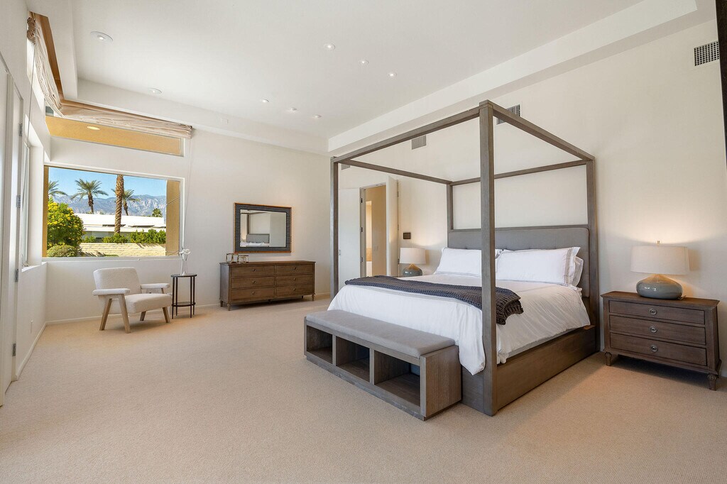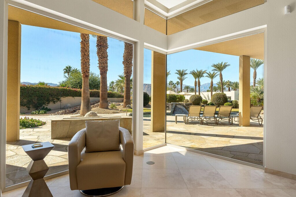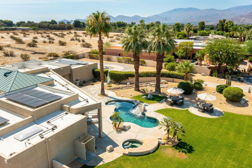 Nestled in the heart of Rancho Mirage,this exceptional estate perfectly combines luxury,privacy,and resort-style living. Set on nearly one acre of lush,beautifully landscaped grounds,the property showcases breathtaking panoramic mountain views and timeless desert elegance. The sparkling pool and spa is enhanced by tranquil water features and surrounded by multiple lounging areasideal for sunbathing,social gatherings,or peaceful evenings under the stars. For those gatherings there's a built-in BBQ,generous patios,and several inviting spaces for dining and entertaining al fresco. Step inside this four-bedroom home to find expansive,light-filled living spaces designed for effortless relaxation and stylish entertaining. A true chef's kitchen with large central island. The three-room guest suite offers an expansive serene retreat for visitors. This Home is adjacent to the 200-acre Sunnylands Estate therefore allowing unobstructed mountains views from every window.. Come and relax in this incredible Rancho Mirage Estate ND Make this your perfect Desert Vacation Located just minutes from world-class shopping,dining,and golf,yet offering complete seclusion,this remarkable residence embodies the ultimate desert escapecrafted for those who value sophistication,comfort,and exclusivity.