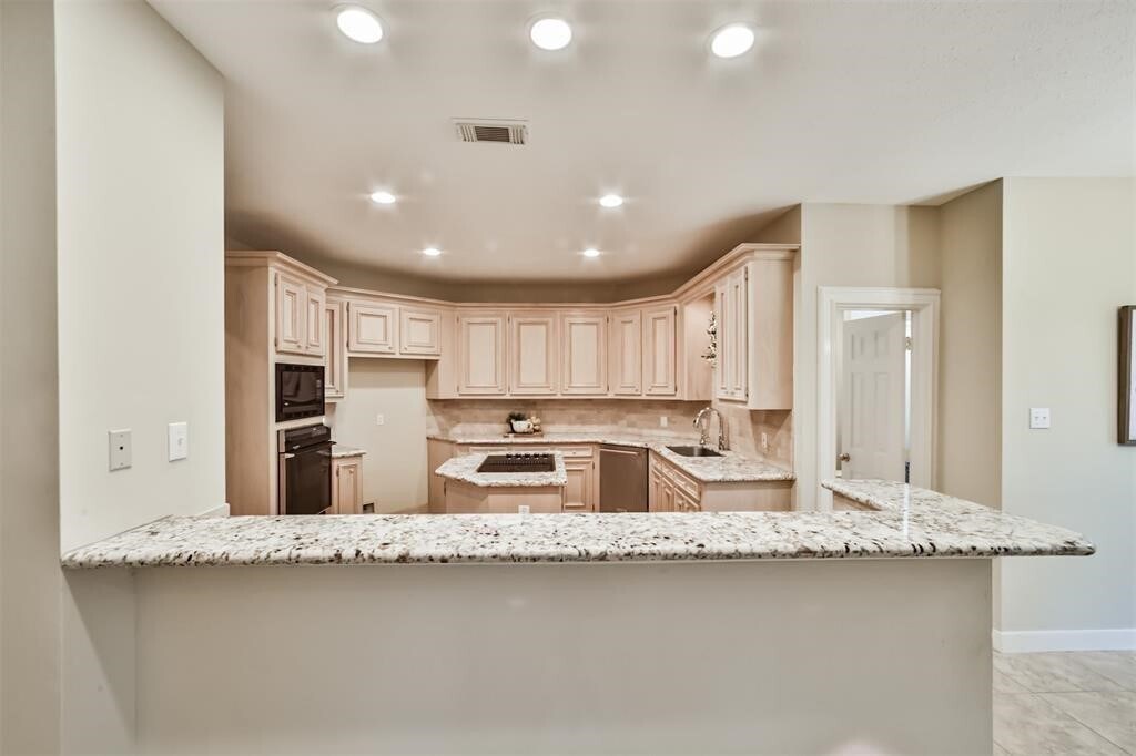 Unique property in the lovely GATED COMMUNITY of Kelliwood Courts,this spacious patio home backs up to WILLOW FORK GOLF COURSE. Enjoy one of many covered patio areas & a built-in grill outside enjoying the golf course view! **Non-flooded home** Custom-built features include SOARING CEILING height in the living area,crown moldings,and a gourmet kitchen. The primary bedroom has a private patio. The third bedroom/flex room can function as an office with beautiful built-in shelving,or a bedroom as it has a good-sized closet. The formal dining room has a dry bar built-in and a view of the patio. The large utility room is the pass-through to the attached two-car garage with room for your golf cart! The HOA maintains the front and back yards twice a month. Lease terms accepted are one year or more only. MLS# 76816852
