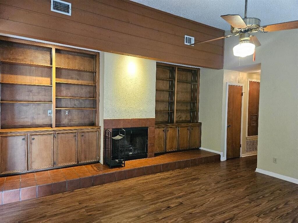 This is a wonderful duplex unit on a quiet street close to historic downtown Elgin. Fireplace and vaulted ceiling in the living room with bookshelves on both sides of the fireplace, bar, formal dining, primary bedroom has built in bookshelves too. Carport and nice yard. MLS ID 9384958