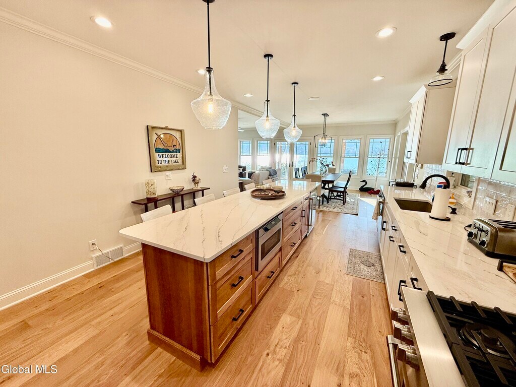 Positioned on the shores of Lake George,this exceptional 6-bedroom,6-bathroom waterfront home at 16 Newton Street offers the ultimate Adirondack getaway. With sweeping lake views and direct frontage,you can relax and watch the iconic Lake George Steamboat Company ships glide by from your own backyard. Designed for both comfort and entertaining,the home features a spacious screened-in porch with a cozy fireplace--perfect for cool evenings overlooking the water. Step outside to your private boathouse and enjoy front-row seats to Lake George's spectacular summer fireworks displays. A dedicated dock slip is included,making it easy to bring your boat and fully experience lake life. Inside,the home offers generous living space with six well-appointed bedrooms and six bathrooms,ideal for large families or groups. Every detail is tailored for a relaxing and memorable stay. Located just minutes from Lake George Village,you'll have quick access to renowned restaurants,marinas,shopping,and outdoor recreation--from hiking and boating to local events and attractions. Whether you're seeking a peaceful retreat or an activity-filled vacation,this premier waterfront property delivers the best of Lake George living. MLS ID 202615375
