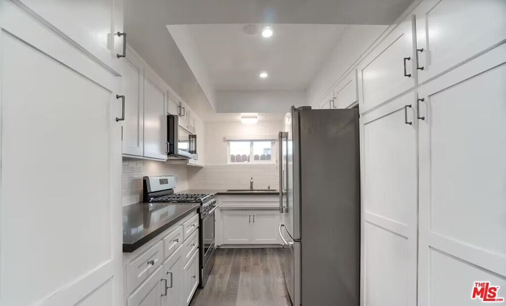 Jackie LiraModernized Beachside 3 + 2 garden apartment in an intimate duplex on the Marina Peninsula. This newly updated Bright & Breeze 2 level apartment features wood flooring, windows, recess lighting, and stainless kitchen appliances: stove, fridge, microwave, dishwasher along with Silestone counters and subway tile back splash. The airy open floor plan Living/Dining room with fireplace flows into a private enclosed front and side patio that is perfect for BBQ's and entertaining. The architecturally designed stairway leads up to a 2nd level bedroom with private bath and Peek-a-boo view from balcony of the sand and ocean. Both first level bedrooms are comfortably sized with roomy closets. Additionally included is a single car garage featuring epoxy floor, garage door opener w/ remote, 2 extra parking spaces (1 carport), washer/dryer in garage. Surf the waves, amble on the open beach and live a stone's throw from fabulous restaurants, shopping and nightlife.