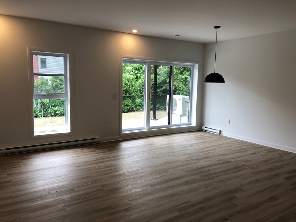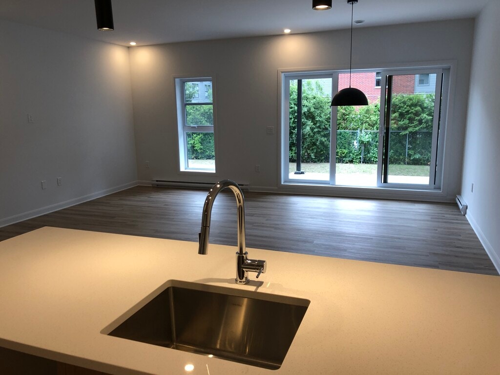 4 ½ neuf Occupation immédiate. Accès sans obstacle de la rue au 1er étage. Plafonds de 9 pieds et immense fenestration. Lumières LED partout. Cour intérieure. Balcons privés. Thermopompe (Climatisation, Chauffage et économie d'énergie). Espace pour laveuse, sécheuse et lave-vaisselle. Insonorisation supérieure (Plancher de béton, membrane acoustique, cellulose, sonopan, etc). Bas coûts de chauffage (isolation 40% mieux que le Code du bâtiment). Immeuble sécuritaire avec surveillance par caméras. Stationnement souterrain. Bornes électriques ($). Boîtes postales et boîte à colis de Poste Canada. Grand casier ($). Immeuble non-fumeur / pot interdit. Chiens interdits (peu importe la taille). Chat OK. Enquête prélocation obligatoire. Clientèle calme et respectueuse seulement. 4 ½ : $1,745 16 Ste-Marie, St-Constant.