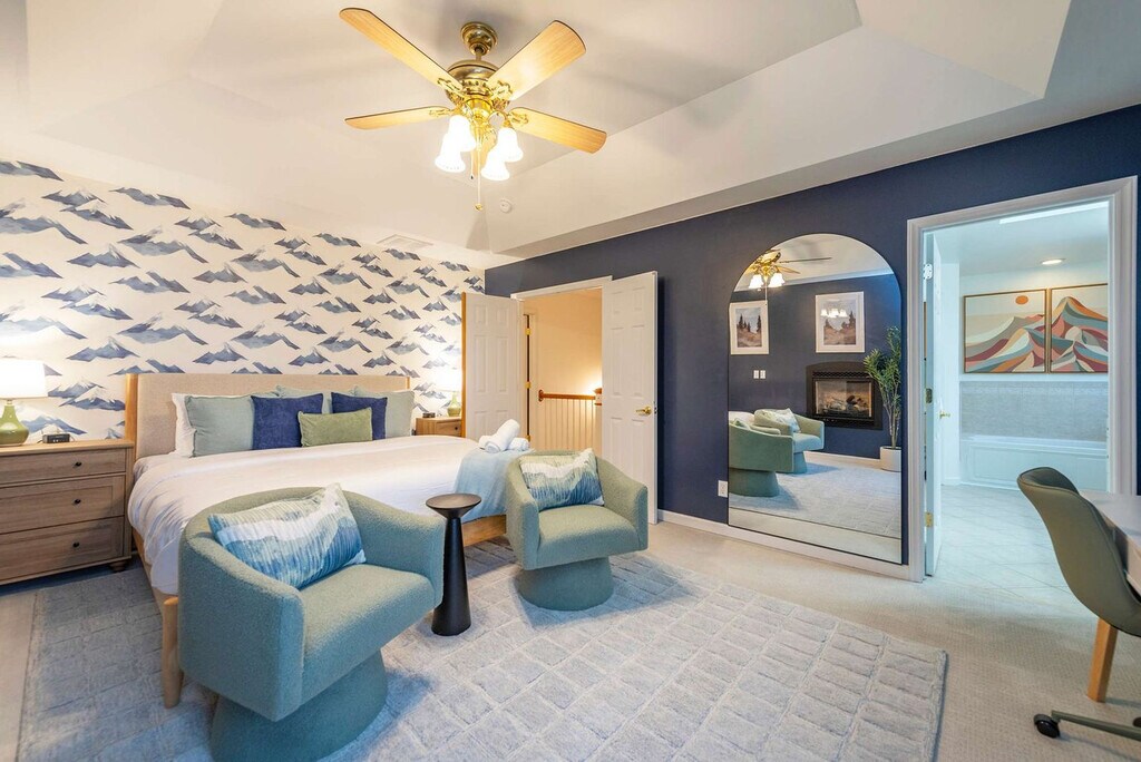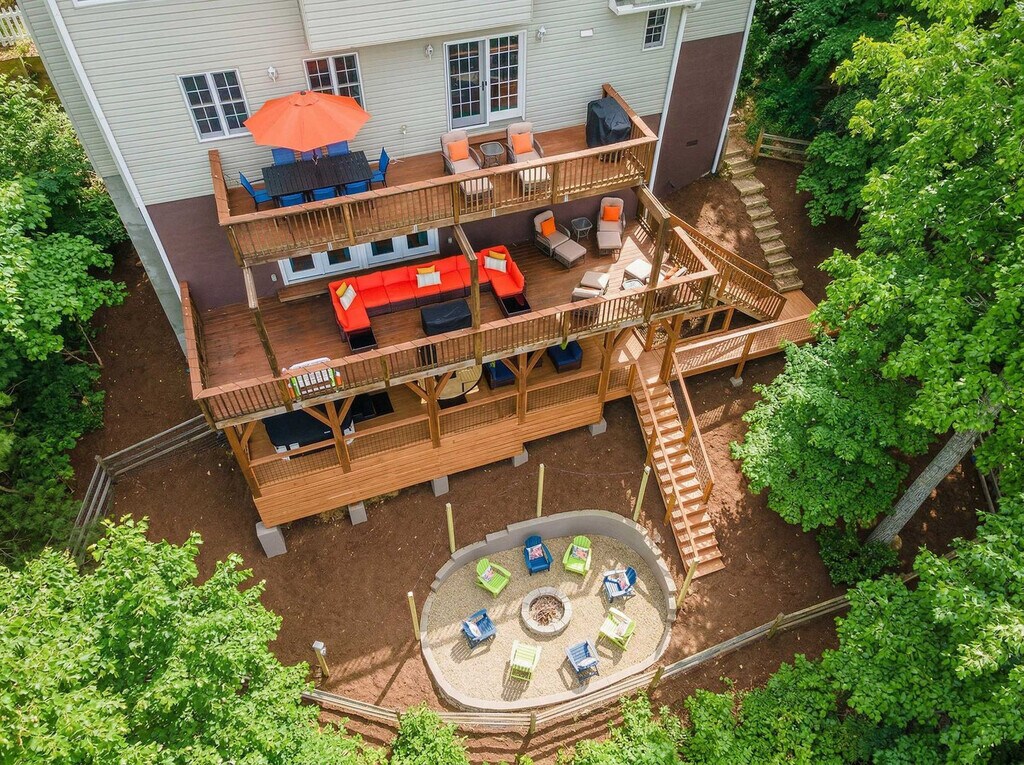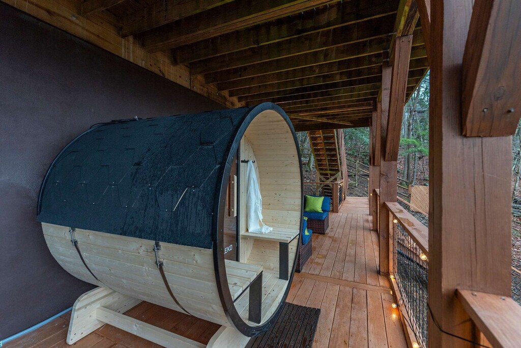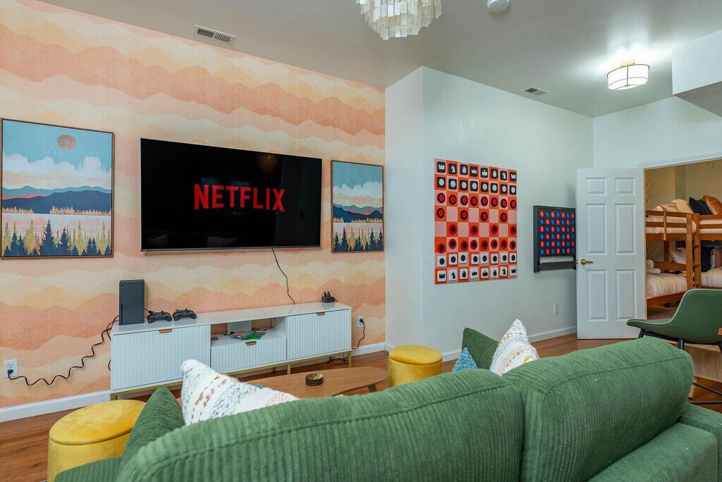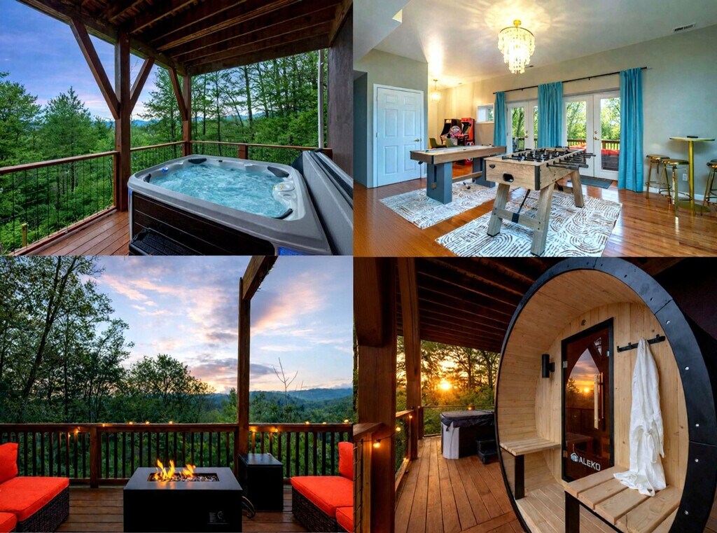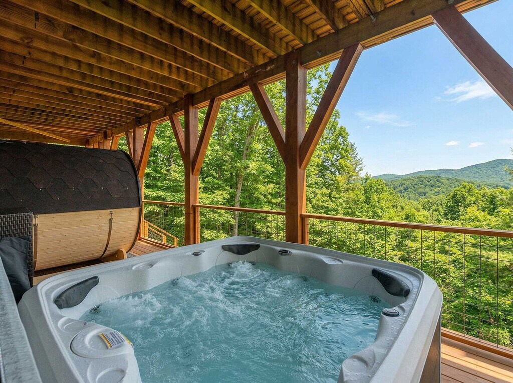 The advertised rate of $14,827/month is the lowest available price, based on a 30 day(s) stay with a move-in date of July 31, 2026. Rates vary depending on the duration of stay, season, and other parameters. For exact pricing and additional pricing components, please visit our website and enter your desired move-in and move-out dates. The rate is applicable when billed upfront; it can be higher if billed in multiple payments. Feel at home in this mountaintop retreat with amazing views of the forest. This elevated home features 5 spacious bedrooms and 3.5 luxurious bathrooms, comfortably accommodating up to 15 guests, and is just 10 minutes from Downtown Asheville. This home is equipped with a private sauna, a hot tub overlooking the mountains, and a game room with arcade games, a pool table, foosball, and an air hockey table. The chef’s kitchen is fully stocked with high-end stainless appliances, ample cabinetry and cooking space, and a coffee maker with Keurig, French press, and coffee pot options. The living room features a 65” smart TV, a large plush sofa, an indoor fireplace, and a pool/ping pong table. Enjoy multiple decks with outdoor seating, dining, a BBQ grill, and a fire pit. Up to 2 dogs are allowed for a fee of $125 per stay. Parking is available for 2 vehicles in the garage and 2 vehicles in the driveway; street parking is not allowed. Nearby attractions include Downtown Asheville (7 miles), Black Mountain (13 miles), Biltmore Estate (9 miles), Blue Ridge Parkway Entrance & Scenic Drives (8–12 miles), The North Carolina Arboretum (10 miles), Western North Carolina Nature Center (12 miles), Asheville Botanical Garden (11 miles), Pisgah National Forest, and Mount Mitchell. There are many restaurants nearby, including Tupelo Honey Southern Kitchen & Bar (11 miles), Chestnut (11 miles), The Corner Kitchen (11 miles), Cúrate Bar de Tapas (11 miles), and Vinnie’s Neighborhood Italian South (11 miles). Renting a car is a convenient option to explore the area. No parties are allowed, and violations may result in immediate termination of the stay. Guests must be 21 years or older to book this property. Check-in is at 4pm and check-out is at 10am. [SI]