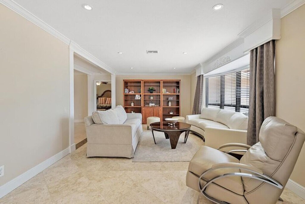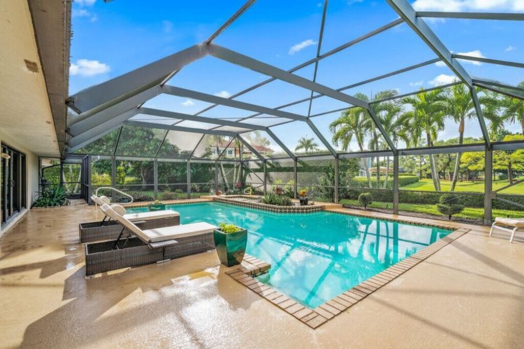 Courtesy of William Raveis Florida, LLC. AVAILABLE April 15th, 2026. This beautifully maintained three-bedroom, three-bathroom pool home in PGA National offers a view of the Fazio 4th fairway. This home features a large heated pool with a spa and sits on a tranquil, beautifully landscaped property in the heart of paradise. Great for entertaining, this home features a separate formal dining room, living room, and den with a wood-burning fireplace. Beautiful Saturnia tile throughout the main areas. Oversized laundry room. Impact windows and doors throughout. PGA National is conveniently located in the heart of Palm Beach Gardens, so you'll have easy access to I-95 , the Florida Turnpike & ten minutes to the most beautiful beaches!