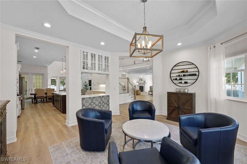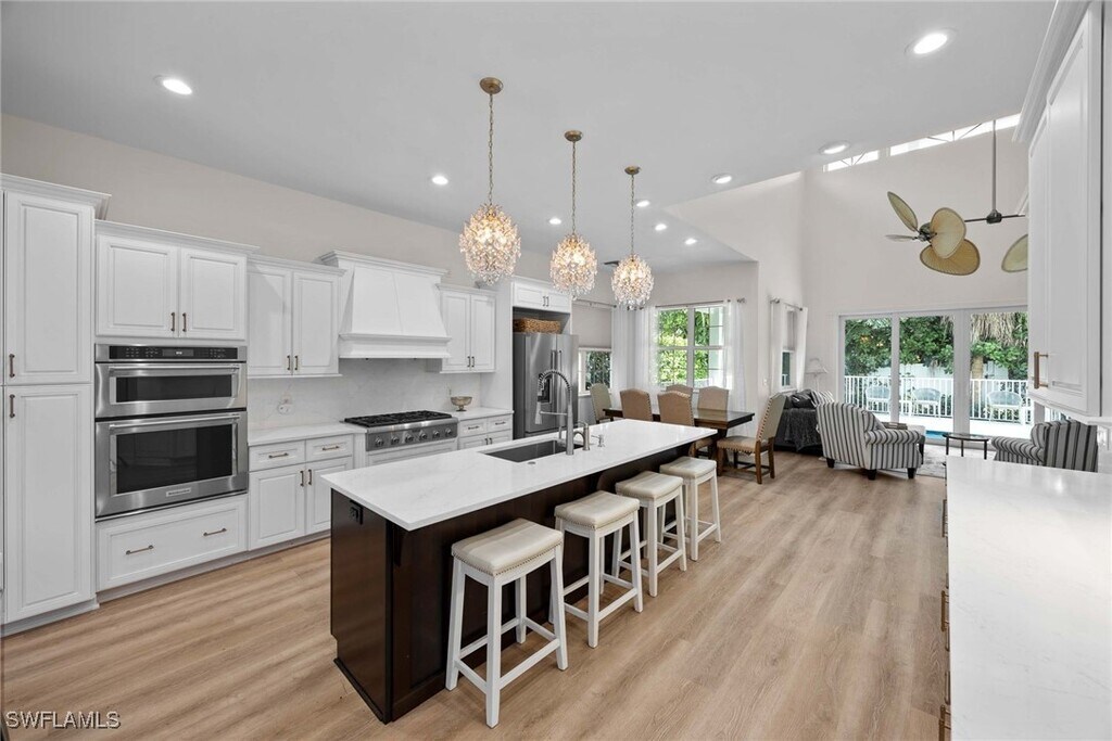 Available for 2026 Season! Experience the ultimate in luxury living in this stunning residence located in prestigious Olde Naples,just steps away from the white sugar sand beaches of the Gulf of Mexico. Recently renovated to reflect today's lifestyle,this Key West architectural gem boasts over 3,600 square feet of interior living space with three bedrooms,an office,and three and a half bathrooms. As you step through the large glass double doors,you are greeted by a foyer with soaring ceilings that lead you to a formal living room complete with a cozy fireplace,adjacent study,and a separate dining room. The home features exquisite hardwood floors throughout,custom-made cabinets,high-end furniture,and top-of-the-line stainless steel chef's appliances in the upgraded kitchen with a large center island. The kitchen opens to a spacious family room with double volume ceilings and French doors that usher you to a sparkling new saltwater pool and luxurious spa surrounded by a lush turf and a grilling area. The two-story layout includes a charming coffee/cocktail spot on the ground floor and upstairs,three spacious bedrooms each with its own ensuite bathroom. The sumptuous primary suite includes a balcony and a luxurious bath with a separate shower,soaking tub,and double vanities. A large front patio and a two-car garage with ample storage space accessed by an alley add to the convenience of this home. Just a short stroll to both 5th Avenue and 3rd Street's quaint boutiques and upscale restaurants,this home is perfect for those looking to enjoy the superb Naples lifestyle.