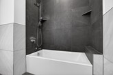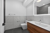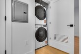 Brand new construction 1 bed, 1 bath in Downtown Jersey City near the Grove Street PATH and bus stop. Be the first to live in this bright, modern home featuring oversized windows, an open-concept layout, and high-end finishes throughout. The kitchen features white quartz countertops, Cafe by GE appliances, and sleek cabinetry. The spa-style bathroom includes a contemporary floating vanity and custom tilework. In-unit washer and dryer add everyday convenience. The building offers elevator access, video-monitored entry, indoor bike storage, and a shared rooftop with city views. Premium light-filtering roller shades are installed in both the living area and bedroom. Located near dining, shopping, and neighborhood favorites like Prato Bakery and Butter Bakery. Pets considered on a case-by-case basis. Available asap