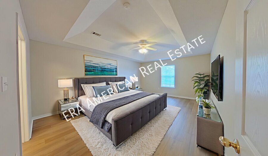 The brick work is absolutely beautiful on this home! Exterior property features include a 2 car attached garage, fully privacy fenced lot, and an open deck perfect for enjoying warm evenings! Open concept living space complete with vaulted ceilings and deck access. Master suite is carpeted with trayed ceilings, walk in closet, double sink vanity, garden tub, and more! All ERA American Real Estate residents are enrolled in the Resident Benefits Package (RBP) for $50/month which includes HVAC air filter delivery (for applicable properties), Credit Building to help boost your credit score with timely rent payments, Liability Insurance, $1M Identity Protection, Utility Concierge Service making utility connection a breeze during your move-in, our best-in-class resident rewards program, and much more! More details upon application. 2 Car Garage Brick Siding Central A/C Stove/Oven (Elct.)