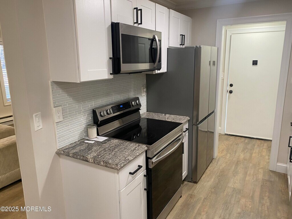 Totally Renovated 1st floor - walk in - 2 Bed 1 Bath with storage unit. This rental features a Stunning white Kitchen with all New SS appliances,Granite countertops & tile backsplash. New Bathroom,Laundry room,Crown Moldings,High-hats,ceiling fans in bedrooms,All New beautiful Floors... A Must See!!! Close to Stores and Restaurants,Bus stops in Covered bridge to NY,No Smokers,No Pets,Security deposit 1 & 1/2 month,55 Plus,and tenant Insurance required...