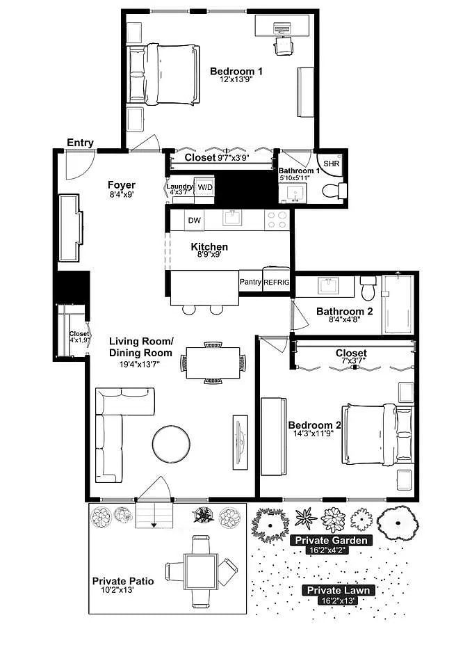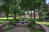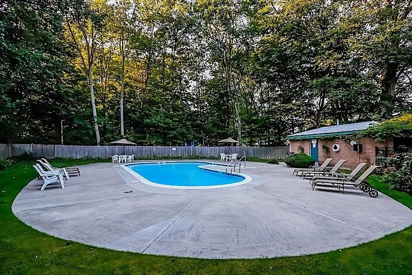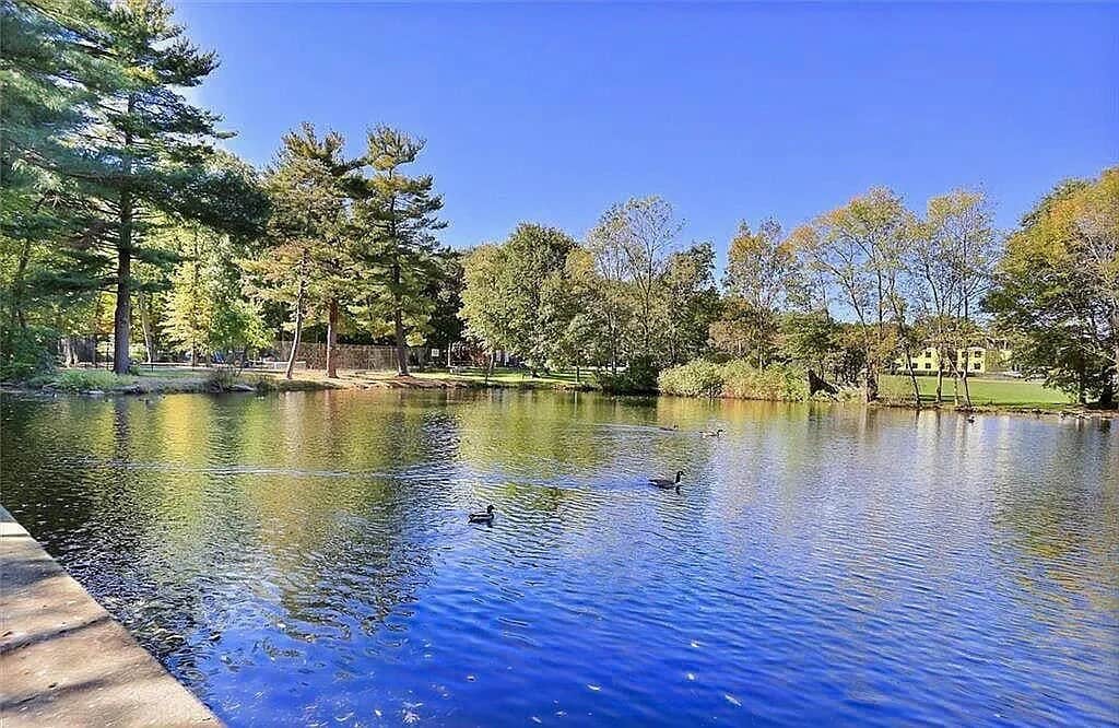 Set on over 5 landscaped acres, this serene, park-like setting features a sprawling courtyard, secluded in-ground pool, tranquil koi pond, illuminated fountains, and direct access to a neighboring park with playground, baseball field, and tennis courts. The residence offers a bright open floorplan with gleaming hardwood floors and floor-to-ceiling windows. A second glass entrance leads to a private patio and garden area overlooking the courtyard. The updated kitchen features a breakfast bar, full pantry, dishwasher, and garbage disposal. Additional highlights include central heat and A/C, in-unit washer/dryer, generous closet space and private basement storage with additional washer/dryers for oversized items. Included in monthly rent: gas heating/cooking, water, trash, one reserved parking spot (visitor parking available for additional cars) and year-round maintenance over the common grounds. Tenant only responsible for electricity and internet/cable. The landlord will consider, but must approve one small pet.