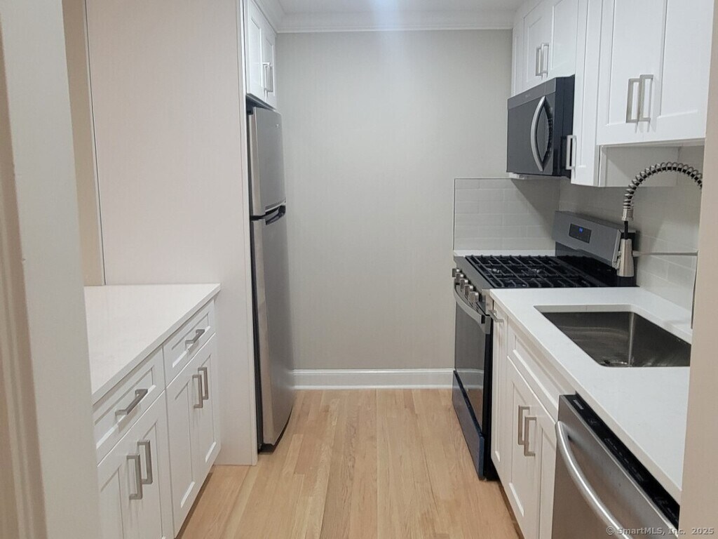 Call for Availability - Welcome to this beautifully renovated condo! Extremely well maintained complex in a park-like setting with winding sidewalks ,a lovely fountain and an inviting in-ground pool. The open floor plan offers a sun filled living room with direct walkout to the courtyard, a brand new kitchen with quartz counters, a breakfast bar and stainless appliances. The spacious bedroom includes a large closet with built-ins.Additional features include refinished hardwood floors throughout, central air and a beautifully updated bathroom. HEAT AND HOT WATER INCLUDED IN RENT. MLS# 24132484