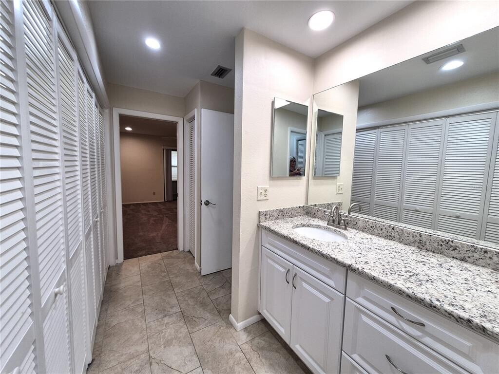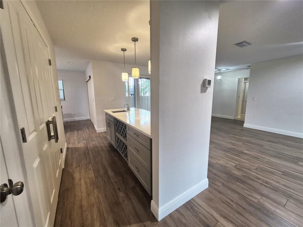Completely renovated villa offering conservation views in the coveted gated community of Quail Forest in East Lake Woodlands Country Club Community! This beautiful residence offers its guests a modern,open-concept floor plan featuring top of the line materials throughout. Upon entry one is greeted with a welcoming open space providing views of the living room,dining area and the gorgeous wet bar showcasing a Calcutta Quartz waterfall. The entire space is bordered to the front by sliding glass doors that open to the private front patio,and to the back,by a fully enclosed,airconditioned,light filled lanai/Florida room that provides unobstructed,beautiful views of palm trees,birds of paradise and the green grass of the conservation area. This kitchen sets the stage for any chef who enjoys entertaining as much as cooking . Designed around a large custom built center island,the kitchen offers premium Calcutta Quartz counters and back splash,newer cabinets,soft close drawers,custom pantry and stainless appliances. This light filled kitchen opens out to the front private patio via sliding glass doors. This split floor plan villa,two bedrooms with their own private baths. The primary suite adds a touch of sophistication with wall lined closets,linen closet,separate dressing area with sink vanity,newly tiled walk in shower,spacious bedroom with sliding glass doors out to the enclosed Florida room. The secondary bedroom also offers sliding glass doors out to the lanai/Florida room and private remodeled bath. The incredibly large lanai/Florida room can be opened to the living area allowing for additional flex space when entertaining or closed to house a private office or needed exercise space. The laundry area is nicely hidden behind two double door with washer and dryer included. Modern upgrades to living areas include recessed,dimmable LED lighting and knockdown textured ceilings. This villa offers one covered car carport,generous guests parking and access to the community heated pool. This is a non-smoking/vaping residence. Basic cable,trash and lawn service are included in the rent. Tenant is responsible to maintain front and back flower beds,weed and possible mulching. This residence is a vibrant,welcoming home that offers the smartest of floors plans and the modern décor that surely separates it from others. Credit score must be above 700 in order to apply. No pets preferred,however,one very small dog (under 15 pounds) will be considered but no cats please. MLS# TB8493722