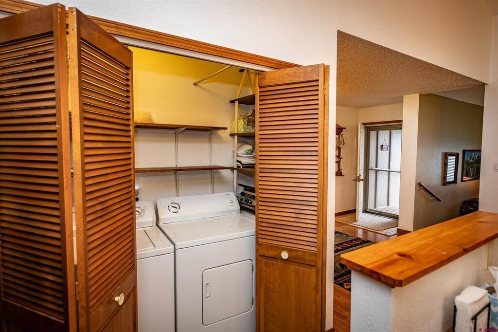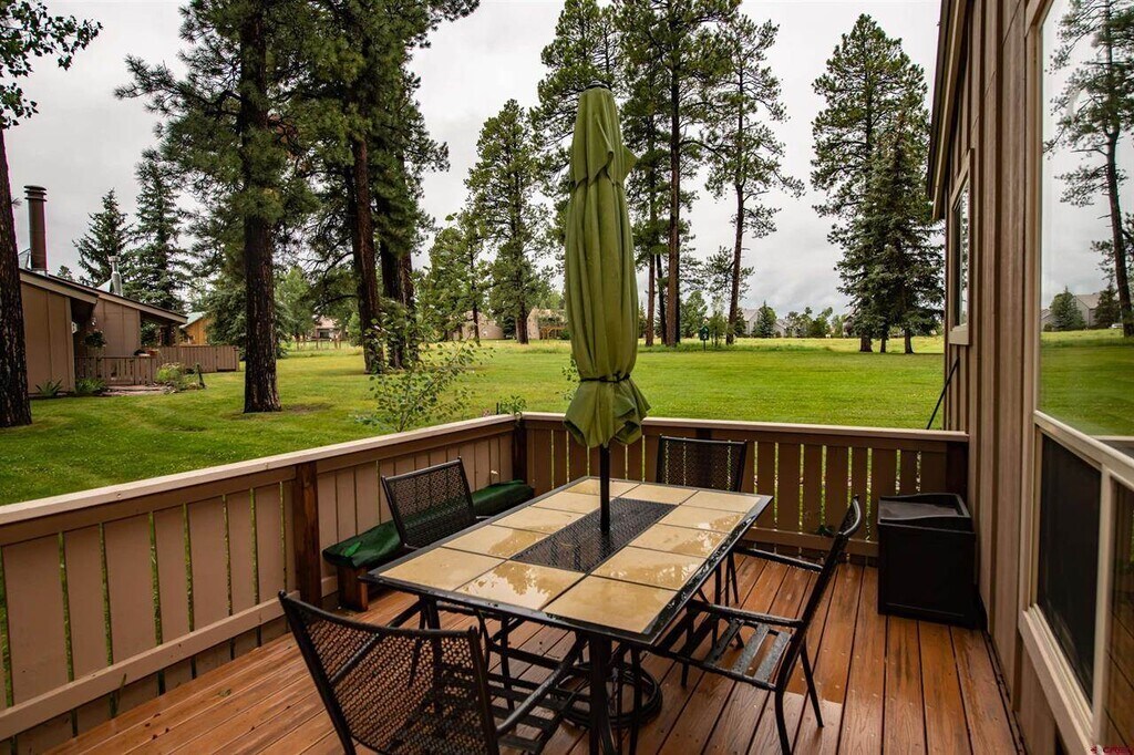 SINGLE LEVEL 2 BEDROOM CORNER CONDO IN UPTOWN PAGOSA! 2 Bedroom 2 bath mountain condo with Air Conditioning. Park like setting outside with large shading trees and flowering garden around the back patio. Large dining area with dining table able to seat 6 people. Sunken cozy living room with fireplace. Walking distance to City Market, Rec Center, Lake and Golf course. Access to 5 Stocked lakes and Rec Center housing indoor salt water pool, jacuzzi, weight room and more. Paved paths wind through the Pagosa lakes area for outdoor activities. Plenty of wildlife to view in the area. Rates: Daily: $175 Weekly: $1,175 Monthly: $2,800 Housekeeping: $175/Under 30 days $250/31+ days $200/Holidays Nonrefundable $150 Damage Fee for all stays Lodging Tax for stays under 30 days SORRY, THIS HOME IS NOT PET FRIENDLY Managed by Rocky Mountain Realty and Rentals Call for questions and reservations or email VR Permit No. 003302