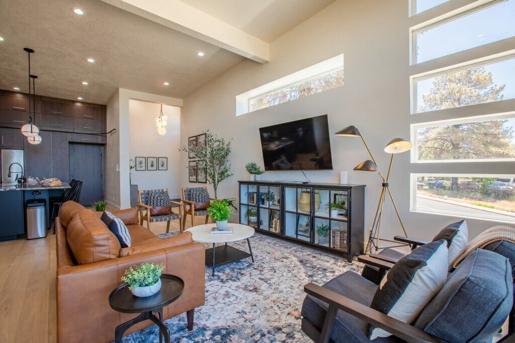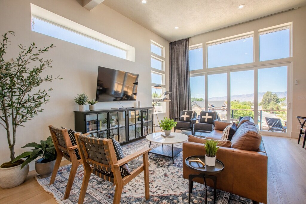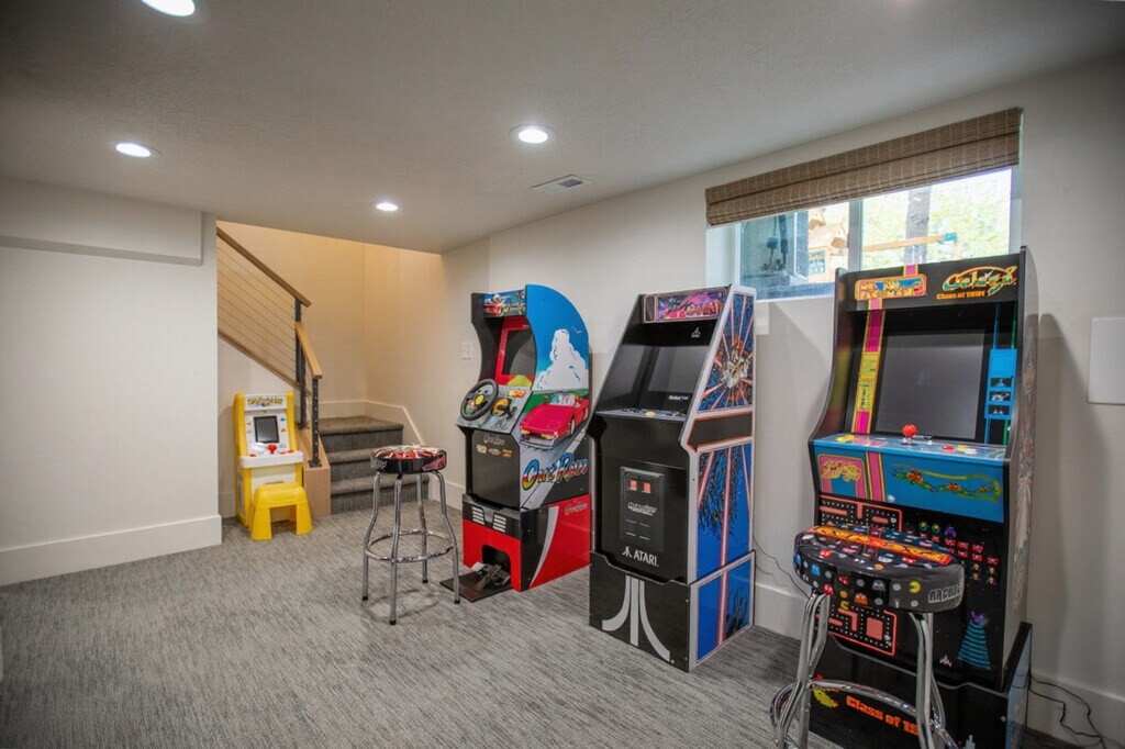 Welcome to the ultimate family and event getaway in Orem! This one-of-a-kind, two-story home is perfect for your next vacation, wedding reception, reunion, or alumni weekend. Located in the heart of Orem, UT, it offers easy access to University Place Mall, Provo Canyon adventures, Downtown Provo, and multiple ski resorts. With 5 thoughtfully designed bedrooms and 9 beds, this spacious home provides ample room for groups, families, or event guests. Designed for comfort, connection, and fun, this home features a master bedroom with a king-size bed and ensuite bathroom, a kids' bedroom with two twin-over-twin bunk beds and a full-size bed, and three additional bedrooms with queen or full-size beds. Enjoy two fully equipped kitchens with modern appliances and a dining area that seats 10. The main living room boasts vaulted ceilings and mountain views, while a second living area includes plush seating and a pool table. Entertainment options abound with three game areas featuring an arcade machine, air hockey, and more. The home is pet-friendly with a secure gated backyard. There is a $10 per day charge per pet, waived for verified service animals. A $250 charge applies for unauthorized animals. Ample guest parking and garage access are available. Situated in a beautiful, open residential area, this home is just 3 minutes from University Place Mall, 10 minutes from Provo Canyon adventures, 15 minutes from Downtown Provo, and 45 minutes from multiple ski resorts. Enjoy the convenience of nearby attractions and the tranquility of a quiet neighborhood. You agree to pay for any items that become damaged during your stay. Early or late check-in/out may incur a $50 charge if not approved. Smoking or vaping inside the property incurs a $200 per day fee. Check-in is after 4pm MST and check-out is before 10am MST. Quiet hours are from 10pm to 7am. The home accommodates up to 16 guests, including a queen-size air mattress and a pack 'n' play for an infant. Includes Wi-Fi and comfortable spaces for remote work, making it easy to stay connected during your stay. [SI]