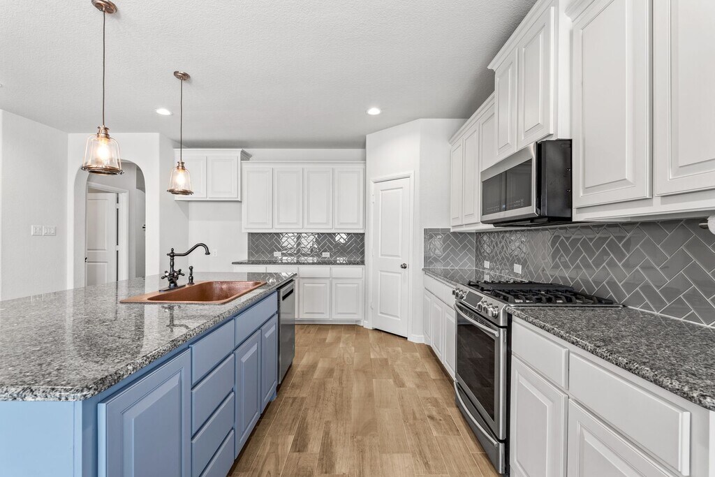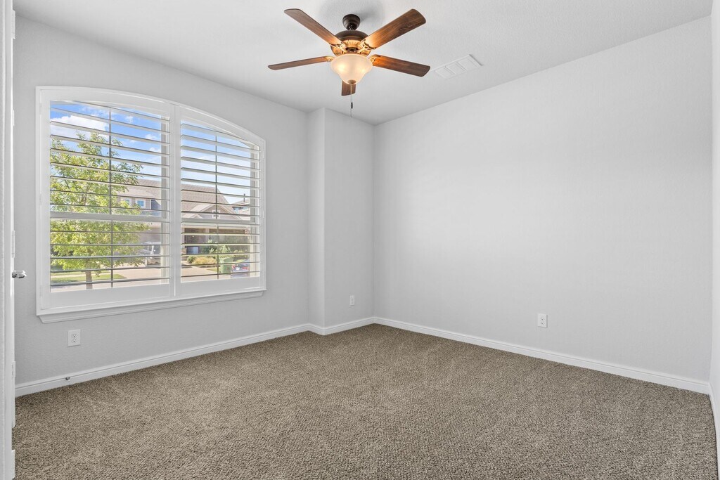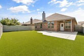Welcome home to this beautifully upgraded single-story residence featuring an open-concept floor plan in a prime location. This 4-bedroom, 2.5-bath home offers stylish wood-look tile flooring, plantation shutters, and a low-maintenance turfed backyard—perfect for both entertaining and everyday living. Designed with families in mind, the split floor plan places guest bedrooms toward the front of the home, providing privacy and functionality. Enjoy full access to Harvest HOA amenities, including scenic walking trails, four pools, two recreational ponds, and more. The newest AISD elementary school is just across the street, with the gym, pool, and dog park all within a quarter mile. Whether you’re drawn to the spacious open kitchen or the relaxing outdoor space, this home checks all the boxes for comfortable, easy living. Pets subject to approval. No cats allowed.
