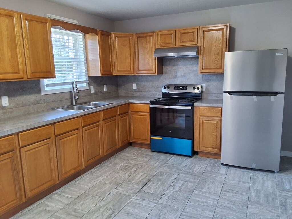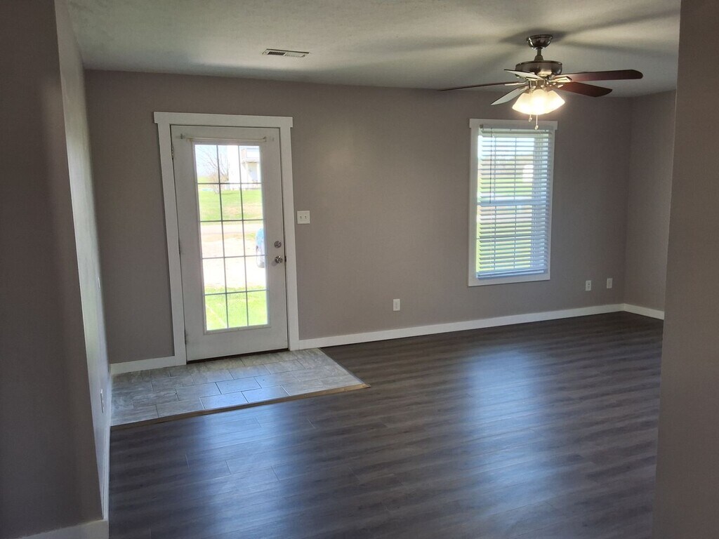 Newly renovated 2-bedroom, 1.5-bath home in Big Clifty, KY, featuring new LVP flooring and tile accents throughout. The single-level duplex offers a full bath and a convenient half bath on the main floor, stove and refrigerator included, ceiling fans, and washer/dryer hookups. Each bedroom includes a double closet for extra storage. Small pets are welcome (cats allowed; small dogs 25 lbs and under). Available with a one-year lease.