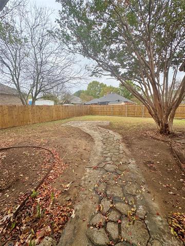 Discover this lovely single-story 3-2-2 home, perfectly situated on a nicely treed lot in established neighborhood. The vaulted ceilings in the living area, kitchen, and dining areas, along with a skylight in the kitchen, create an open, illuminated atmosphere. The main living area features a cozy brick fireplace and a wet bar, great for entertaining. The kitchen boasts classic wood cabinetry, and black appliances including a built-in microwave, dishwasher, and stove. An adjoining breakfast nook offers a charming bay window for casual meals. Retreat to the generously sized primary bedroom. The en-suite bathroom includes a double vanity, a separate tub, and walk-in closet. The property features a fenced backyard with mature trees, offering privacy and shade, and a unique flagstone-style walkway. A covered back porch provides a shaded spot to relax or entertain outdoors. With its excellent curb appeal, and well-maintained condition, this home is ready for you! Don't miss the opportunity to make this beautiful property yours. No pets please.
