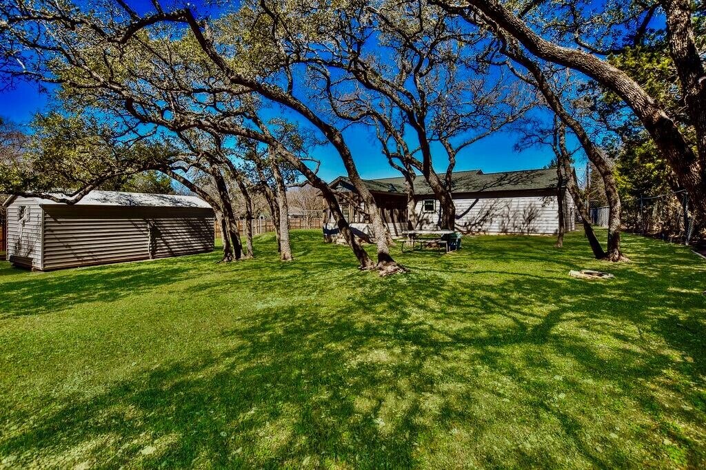 WONDERFUL ONE STORY HOME LOCATED ON A GREAT LARGE LOT IN THE LAKE AREA!!! THIS HOUSE OFFERS A COMFORTABLE LIFESTYLE NESTLED IN A GORGEOUS NATURAL SETTING - BEAUTIFUL MATURE OAK TREES, SCREENED IN PORCH, EXPANSIVE FRONT YARD & LAKE TRAVIS IS CLOSE BY * SMART FLOOR PLAN INCLUDES EASY TO MAINTAIN TILE FLOORING, STAINLESS STREEL APPLIANCES, FABULOUS ANDERSEN WINDOWS & WASHER, DRYER, FRIDGE MAKE THIS HOUSE READY TO GO! THERE ARE TWO OUTDOOR BUILDINGS - GREAT FOR A WORKSHOP/STORAGE * ONE OF THE BUILDINGS INCLUDES ELECTRICITY * EXCELLENT SCHOOL DISTRICT & EASY ACCESS TO SHOPPING, SCHOOLS, DOWNTOWN & MAIN ROADWAYS * ENJOY LAKE TRAIVS LIVING IN THIS CHARMING ONE STORY HOME - SUPER CLEAN!!! MLS ID 4217883