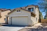2 story,2,379 sf home in beautiful Surprise Farms. This home has 4 BRs (3 up,1 down),ALL w/ceiling fans & walk in closets! The primary BR is upstairs & has a private bathroom w/ tub/shower combo. Spacious eat in kitchen w/NEW SS fridge & large pantry! Nice family rm off one side of the kitchen PLUS a living rm/dining rm combo off the other side. There is also a versatile loft area that could make a great office or playroom. The 1st floor is all tile & the upstairs has NEW ''wood plank'' vinyl flooring. Beautiful yard w/lush green turf & view fence. Home backups to a greenbelt. Surprise Farms is a great community w/parks,tot lots,splash pad,skate park,basketball & ball fields. Pets must be approved by landlord. Owners are licensed AZ real estate agents. Applicants can apply directly through Rental Beast: There is a $49 fee which includes the credit/background check.