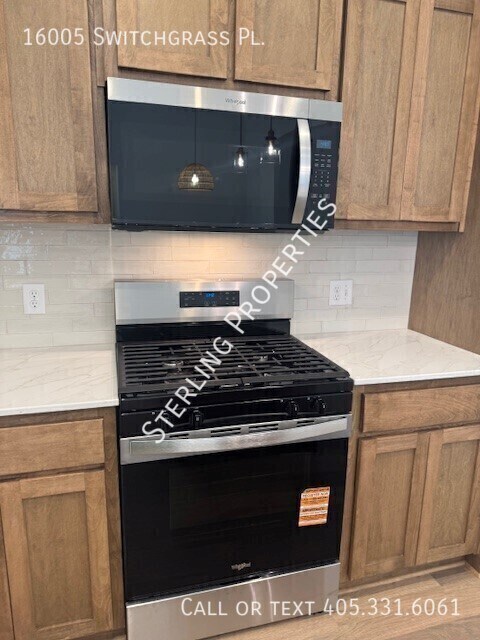 BRAND NEW ENERGY EFFICIENT CONSTRUCTION in the Ideal Homes Featherstone / Native Plains communities in SWOKC - Moore schools. 3 bedroom home with wood-look tile throughout the main living areas, carpet in the 3 bedrooms. Master suite to the back of the home with double vanity, garden tub and separate tile shower. Secondary bedrooms to the front side of the home complete with ceiling fans. Mud bench in the utility with access to the garage. Kitchen features stainless steel gas range, built in microwave, dishwasher, disposal, pantry and a large center island for prep space. Large covered back patio with small fenced backyard, pet friendly with additional refundable pet deposit. 2 Bathrooms 2 Car Garage 3 Bedrooms Central Heat & Air Covered Patio Gas Stove Kitchen Island Open Plan Washer & Dryer Hook Ups