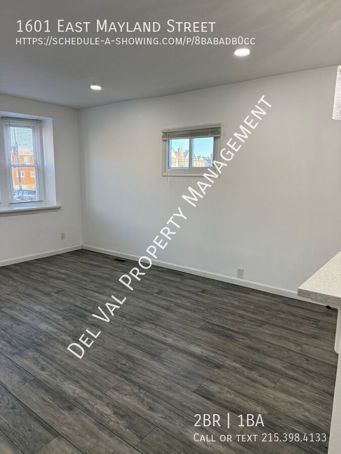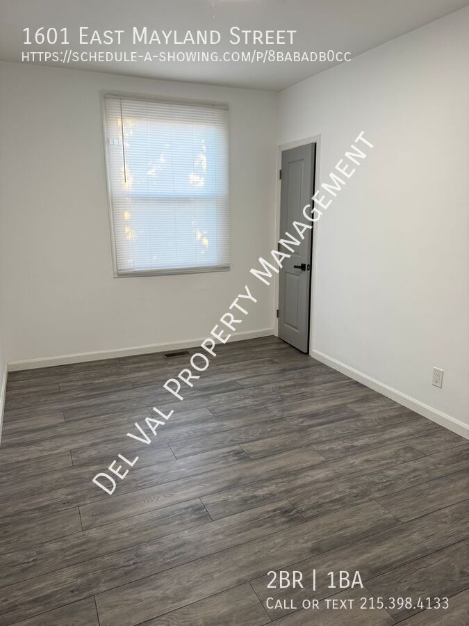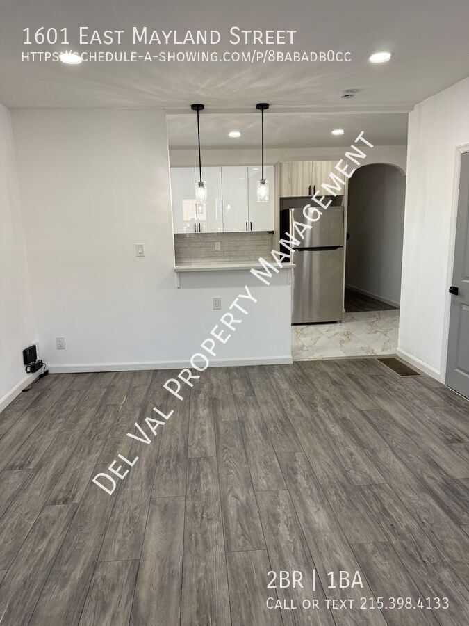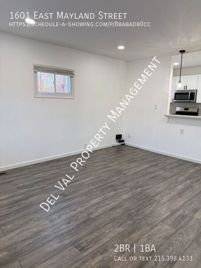 For Rent – Fully Renovated 2-Bedroom Apartment (First-Floor Unit) 1601 E. Mayland St, Philadelphia, PA – West Oak Lane $1,650/month | Tenant pays utilities (water billed separately) Beautifully renovated 2-bedroom, 1-bath first-floor apartment in a well-kept duplex. Enjoy a bright, open layout with modern finishes throughout — perfect for professionals, couples, or small families. Features: 2 spacious bedrooms with ample closet space Updated bathroom with new tile, vanity, and fixtures Brand-new kitchen with modern cabinetry, countertops, and appliances Washer and Dryer Open living/dining area with large windows Private entrance and access to outdoor space Location: Convenient to Ogontz Ave, Cheltenham Ave, and Broad Street Near public transportation (SEPTA bus routes & regional rail) Minutes from La Salle University, parks, schools, and shopping centers Quiet residential block with easy street parking Schedule a Showing or Apply Today! · Application Details: · $65 non-refundable application fee · $25 lease administration fee · Move-in costs: First month + 1 month's security deposit (unless conditionally approved which carries 1.5 months security deposit) · We verify income, credit, rental, and employment history · Bonus: This rental includes our Resident Benefits Program, featuring: · Online rent payments · Utility concierge service · One-time late/NSF fee forgiveness Other Del Val Properties Listed by: Del Val Realty & Property Management 49 E. Lancaster Avenue, Suite 300, Malvern, PA 19355 All information is deemed reliable but not guaranteed. Independent verification is recommended. Don’t miss this opportunity—schedule your showing today!