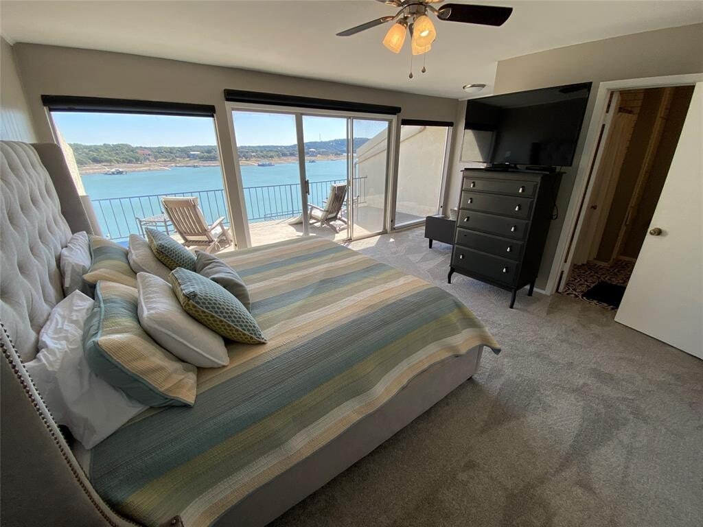 Waterfront Condo with boatslip including lift and watercraft parking slip for your wave runner or sea doo! *Furnishings negotiable* *Lease terms negotiable* Breathtaking Panoramic views of Main Lake Travis! Condo has 3 bedrooms and 2.5 bathrooms with a large covered patio and private master outdoor deck over looking Lake Travis! Pool and hot tub located on large deck over looking Lake Travis. Whitecliff is a small complex with mostly second home owners with low occupancy. One covered spot and extra parking in lot directly behind carport. Owner pays assoc. dues, sewer and trash collection. Fishing and swimming off large boat dock. Condo is unfurnished, but is negotiable as well as the lease terms.
