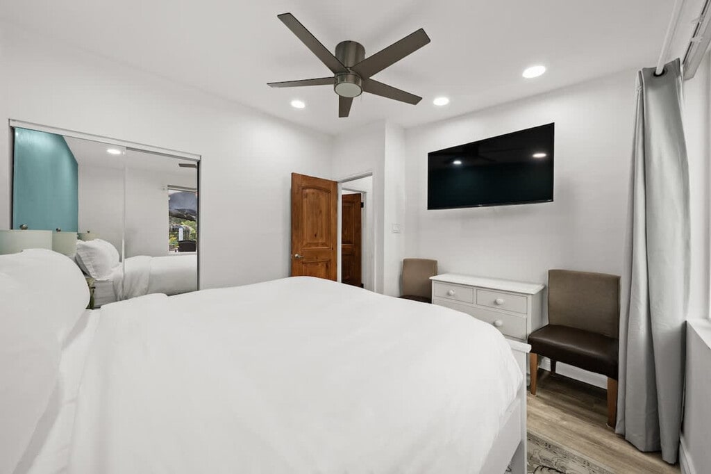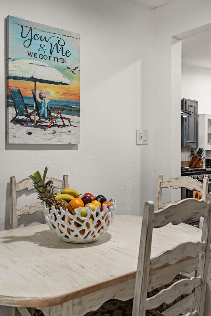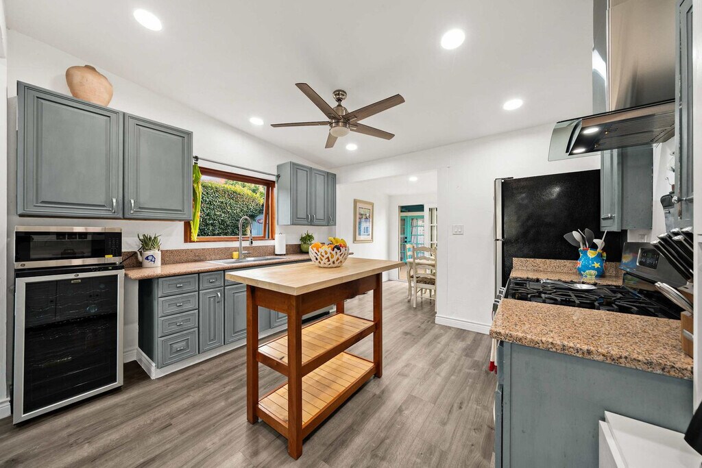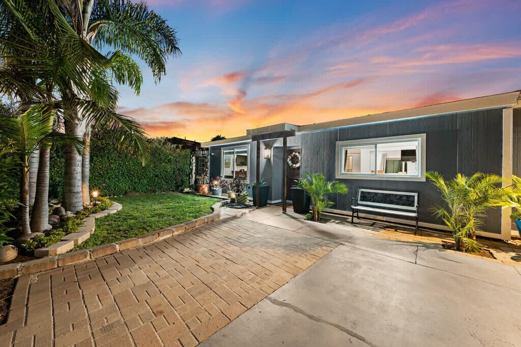 Take it easy and feel at home in this fully furnished, pet-friendly home in a quiet Oceanside neighborhood, only two miles from the beach. This property is perfect for long-term stays, remote work, or extended vacations and includes room for two cars in the driveway. This private, gated home features multiple outdoor dining tables, a lounge area with seating for six, two chaise lounge chairs for sunbathing, a wood-burning fire pit, and a fully enclosed grass yard. Indoor comforts include a living room with a leather couch, loveseat, ottoman, ceiling fan, smart TV, and fireplace. The dining space has an indoor dining table with seating for four. The full bathroom features a shower, sink, toilet, and soft 100% cotton towels. The kitchen is equipped with new, stainless steel appliances: refrigerator, dishwasher, and 5-burner gas stove, as well as a Keurig and traditional drip coffee maker, a wine cooler, and an HE washer and dryer. A maximum of two pets are allowed for a fee of $50 per pet, per week. Oceanside, CA, is a relaxed coastal town in northern San Diego County, known for its wide beaches, historic wooden pier, and small harbor. It’s a walkable area with casual restaurants, coffee shops, and local stores, especially near downtown and the beach. Guests can enjoy surfing, beach walks, harbor activities, or biking along the coastal trail. The California Surf Museum and weekly farmers markets offer a taste of the local culture. It's also a convenient base for visiting nearby spots like Carlsbad, Legoland, or San Diego. Quiet hours are daily from 10:00 pm to 8:00 am. Unauthorized additional guests/visitors will result in an unauthorized visitor fee of $250 per person. If tape, decorations, glitter, or confetti are found on the property following your stay, you will be charged an additional cleaning fee. No animals are allowed on the beds or any of the furniture. If you leave the property, your pet either joins you or stays in their crate. If there are any pet-related damages, you will be financially responsible for any repair or replacement costs. Please keep any barking or crying that will disturb neighbors to a minimum. Please do your best to clean up after your pet (fur in the house, waste outside, etc.) before check-out. Guests who bring unauthorized pets onto the property will be responsible for a fine of $250 per pet, and any additional cleaning charges based on the cleanliness of the home at time of check-out. Evidence of smoking will result in a fine up to $2,000 for smoke remediation. No illegal activity or illicit substances are permitted on the premises: doing either will result in immediate eviction from the property, and may also result in law enforcement involvement. Includes an L-shaped desk, ergonomic office chair, a computer monitor, and printer. [SI]