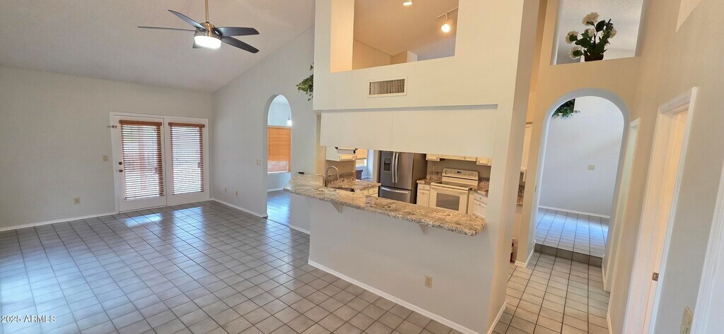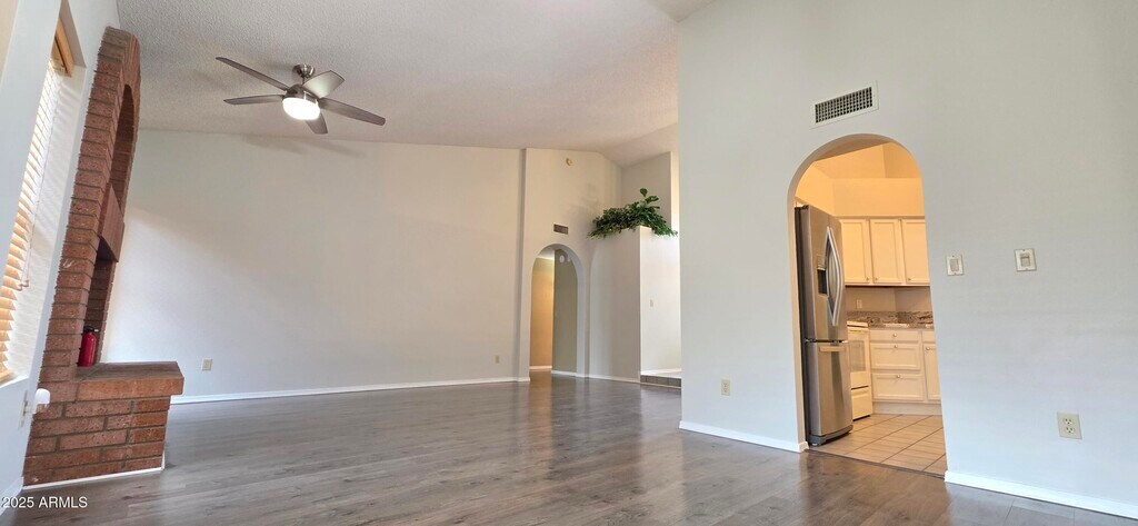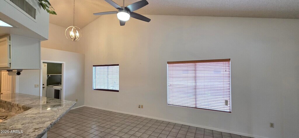 Welcome to this spacious and meticulously cared-for home located in one of Chandler's most desirable neighborhoods! Offering nearly 2,000 sq. ft. of thoughtfully designed living space,this 3-bedroom,2.5-bath residence perfectly combines comfort,style,and functionality. Step inside to discover vaulted ceilings,a cozy fireplace,and gorgeous laminate flooring that flows seamlessly throughout the main living areas. The kitchen is a true standout with granite countertops,crisp white cabinetry,and ample space for cooking and entertaining. All bedrooms feature elegant plantation shutters,providing both charm and privacy. The updated hallway bathroom adds a modern touch,while the newer roof underlayment (replaced within the last year) ensures peace of mind for years to come.