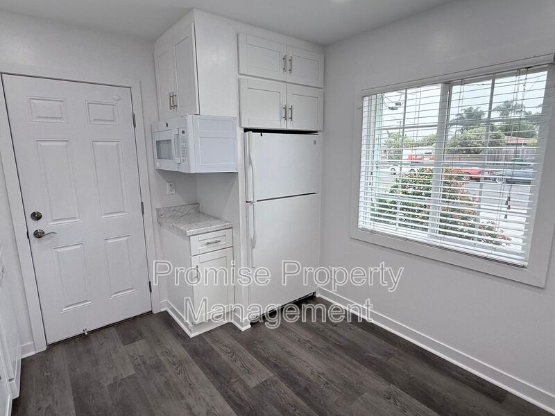 This is a Single Family detached home with 2 bedroom 1 bathroom and 1 car garage with electric opener. Wall heater in Living. Newly renovated kitchen with brand new shaker style cabinets and LED lighting. LVP Flooring and tile throughout. No carpeting. Washer/Dryer hookup in garage. (Electric) Large fenced in back yard. Tenants responsible for landscape upkeep and maintenance. Only 2 miles from the beach and easy access to Highway 76 and the 5 Freeway. Appliances Included: Refrigerator, Gas Stove/Oven, Dishwasher, Microwave Utilities Included: NONE, NO central AC in this home. Cats Allowed: No Dogs Allowed: No