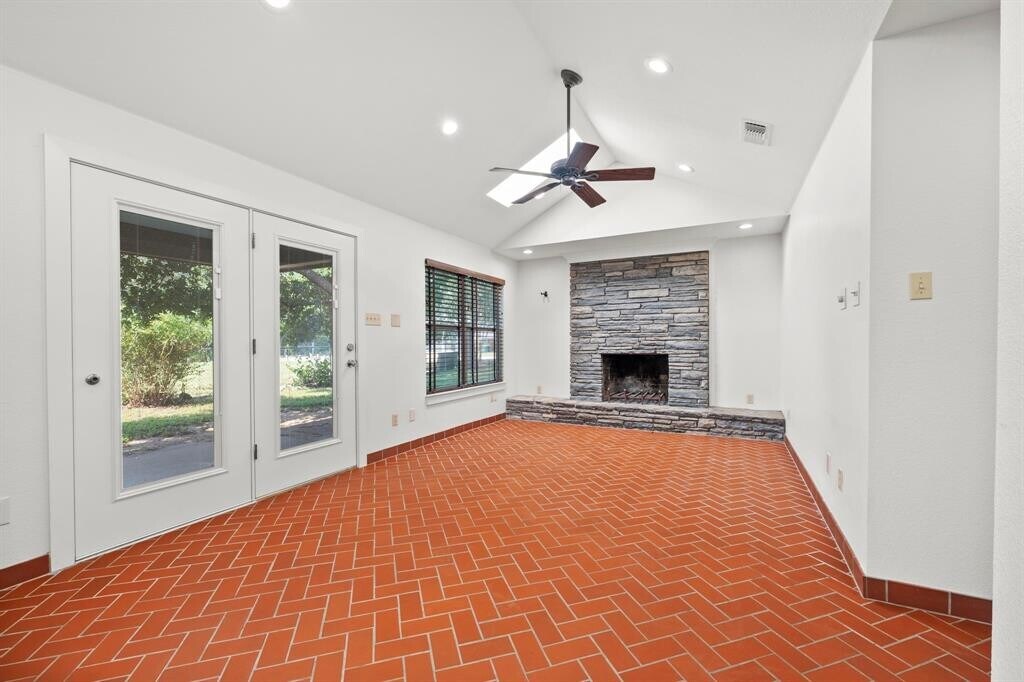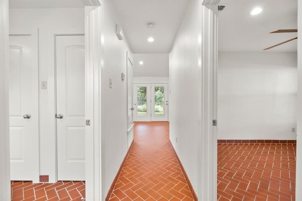 Enjoy living by the lake! Newly renovated finished cottage with no shared walls to adjacent unit (and separate sidewalk and entrance). 1601 West Lane is less than a block from the beautiful Lake Austin at Quinlan Park. Charm meets function in 900 square feet. Two good-sized bedrooms and one full bathroom, plus a spacious living room and dining space opening to the kitchen. Features: large covered front porch with double doors, vaulted ceiling, fireplace with hearth, skylights, 100 percent tile flooring (no carpet!) and counter tops. Other elements: all new stainless steel appliances, newer HVAC, newer water heater, nice paint inside and outside, washer/dryer connections, fenced yard, covered porch, covered storage and tons of charm! No use of nicotine products. Street parking on quiet street. Next to vacant lot owned by landlord.