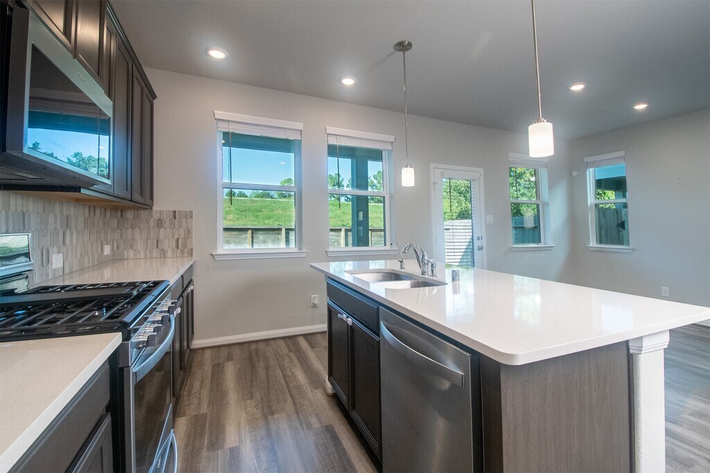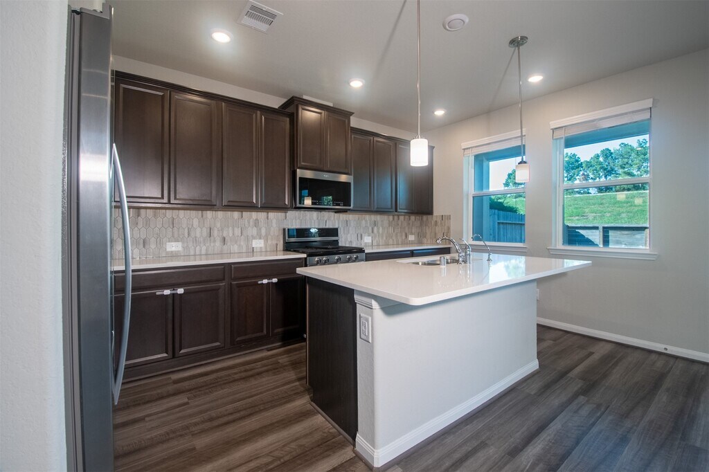 This stunning 3-bedroom,2.5-bath,2-story home is truly a gem,offering a spacious and open floor plan perfect for modern living and in a gated community of Park Row Village. The gorgeous island kitchen features sleek quartz countertops,stainless steel appliances,and a massive walk-in pantry - an entertainer's dream! Enjoy incredible energy savings with groundbreaking features like spray foam insulation,radiant barrier,and double-pane windows,keeping you comfortable year-round. The home boasts contemporary finishes throughout,and the luxurious primary suite is a true retreat,with a spectacular view,and a spacious walk-in closet. The backyard features a covered patio that overlooks a peaceful greenbelt - NO back neighbors! Prime location in the heart of the Energy Corridor,close to work,and surrounded by scenic hike and bike trails. This home is packed with features you’ll love schedule your private tour today before it’s gone! MLS# 33772115