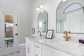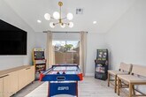 Recently updated home is on a corner lot for rent! Great curb appeal with palm trees and a 2-car garage. Available furnished or unfurnished. Features a fun den (arcade machines + hockey table),bright living room,and a modern kitchen with quartz counters . Spacious primary suite with walk-in closet and dual-sink bath. Vaulted ceilings and tile throughout. Enjoy a private backyard with covered patio and outdoor space. Near parks and I-10 don't miss it! MLS ID 7020526