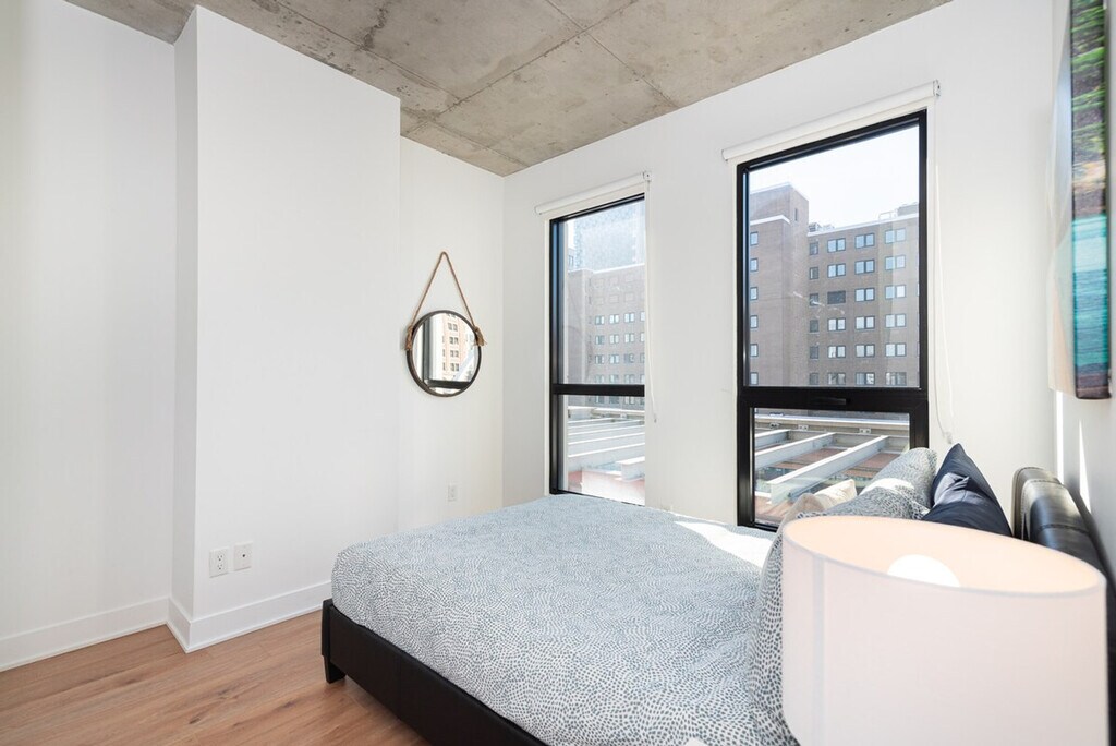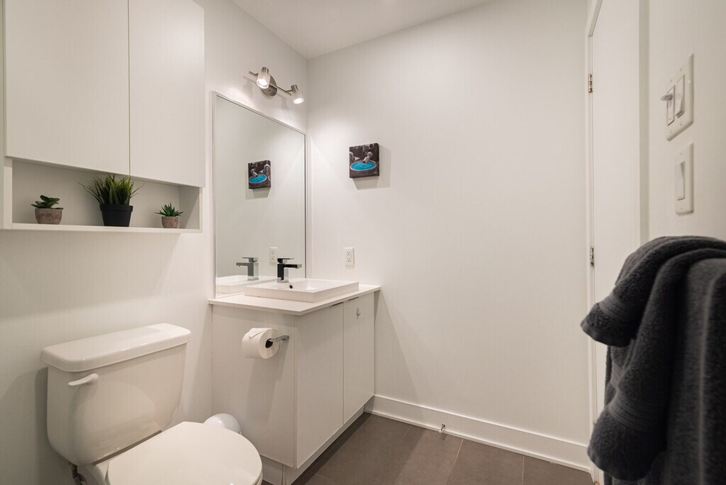 This new development is set to be a luxurious addition to Montreal’s skyline. Its prime location opposite the Esplanade Tranquille not only promises convenience but also stunning vistas of Montreal’s vibrant heart. With amenities such as a swimming pool, gym, and terrace, it offers a lifestyle of comfort and leisure. Situated near the Saint-Laurent metro station, commuting is effortless, while the panoramic views allow you to admire the city's beauty from every angle. This apartment welcomes 2 guests and has one bedroom with a queen bed and a full bathroom. Enjoy your favorite shows on the smart TV and stay seamlessly connected with high-speed Wi-Fi throughout your stay. Guest access includes a pool, gym, indoor parking, elevator, and security system. Indoor parking with in/out privileges is available for an additional fee, which varies depending on your length of stay. We offer a variety of cleaning services, including biweekly or monthly options, for an extra charge. No parties of any kind or loud noises that can alter the harmony of residents are allowed. No smoking, including cannabis and cigarettes, is permitted inside the apartment, on the balcony, or in the building. Please care about your home away from home. [SI]
