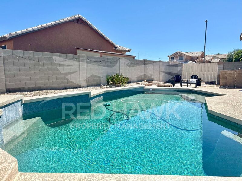 Beautiful 4 Bedroom plus Den, 2.5 Bathroom Wildflower Ranch Rental with Private Pool! Located Just Minutes from Shopping, Dining and Entertainment with Quick Access to the I-10 Freeway and Beyond. Neutral Two-Tone Interior Features Entry with Vaulted Ceiling, Formal Dining Room, Den with Private Entrance/Exit, Open Kitchen, Spacious Living Room, Newer Carpet Throughout, Half Bath on First Level, Full Hall Bathroom, Master Suite with Two Closets, Double Sinks, Separate Tub/Shower and the list goes on! Second Refrigerator in Garage for Tenants Use. Plus N/S Exposure, Covered Patio, Gated Private Pool with Weekly Service Included! $150 Tenant Set-Up, 2% Monthly Admin Fee plus Tax. Pets with Owner Approval- No Cats. $500 Pet Fee with Approved Pet. *Lease Term to be 14 Months* Amenities: private pool, covered children's playground, bike/walk paths, close to wildflower south park