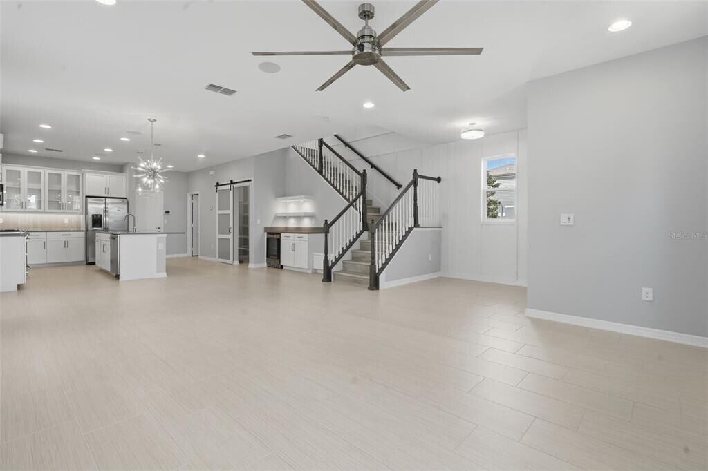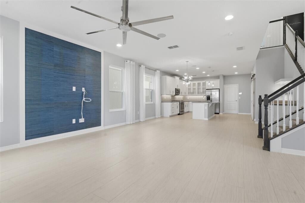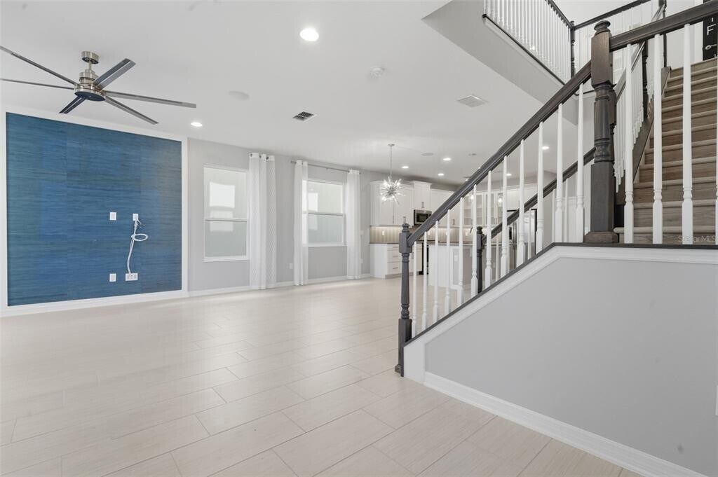 Set within Encore at Ovation in Horizon West,this former Sebring model home blends lock-and-leave convenience with a polished,move-in-ready feel. The first floor is all about everyday living and entertaining,with an open family room flowing into a thoughtfully designed kitchen featuring 42” shaker-style linen cabinets with crown and light rail,glass-front display doors,soft-close drawer stack,and a double pull-out trash drawer on the island. Grey Silestone Quartz counters,a single-bowl undermount sink,chevron-patterned tile backsplash,and a GE stainless gas range,refrigerator,dishwasher,microwave,and under-counter beverage fridge create a cohesive,upgraded look,while LED under-cabinet lighting and added recessed cans keep the space bright and inviting. Tucked just beyond the main prep area,the walk-in pantry offers discreet,easily accessible storage for dry goods,bulky countertop appliances,and entertaining essentials,allowing the kitchen’s clean lines and upgraded finishes to take center stage. Upgraded tile carries through the foyer,powder bath,kitchen,and family room,complemented by designer paint,extensive trim work,upgraded interior hardware,and a stained handrail with painted spindles and wood treads on the staircase,giving the home a quietly upscale feel that is still practical to maintain. Upstairs,wood floors continue into the loft and hallway,where a built-in desk with storage offers a ready-made workspace or homework station. The primary suite sits privately at the rear of the home and includes a tray ceiling,wood flooring,sizable walk-in closet,and an en-suite bath with two raised-height vanities,Silestone counters,rectangular undermount sinks,chrome fixtures,and an oversized walk-in shower finished with vertically stacked 4x16 tile to the ceiling,glass listello detail,recessed niche,and semi-frameless enclosure. Two additional bedrooms share a well-appointed bath with tiled tub/shower surround to the 9-foot ceiling and upgraded vanity top,while the nearby laundry room—with cabinets and a utility sink—keeps everything organized and out of sight. A tankless gas water heater,enhanced low-voltage wiring to support today’s smart-home and streaming needs,and abundant recessed lighting throughout add everyday comfort. Outside,an alley-loaded 2-car garage preserves the home’s charming streetscape,and the community’s resort-style pool,fitness center,and playground make it easy to enjoy the Florida lifestyle. With quick access to 429,Horizon West town centers,Flamingo Crossings Village,and the major employment and entertainment hubs around Winter Garden and the attractions area,this home offers the finish level of a model with the practicality of a well-planned primary residence. MLS# P4938381