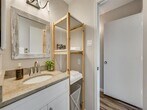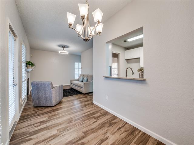 Welcome to the recently updated and beautifully appointed first floor condo home. Solid flooring all the living and high traffic areas and carpet in the bedrooms for comfort and relaxing. Enter to the open light and bright Living area with wonderful laminate wood-like flooring and stunning fireplace which includes tile accents and a wide mantel. To the side is your kitchen showcasing plenty of storage, ample counter space, and white appliances. From the kitchen there is a large pass-through window, great for entertaining, to your dining area. The dining area overlooks the covered back patio great for enjoying the morning breeze or evening sounds. Both bedrooms are well-sized and have access to individual sinks. No fighting over mirror time! Take a moment to notice all the updated details throughout. This home has been thoughtfully prepared for your move-in. Located within short distances to all the necessary and desired eateries, entertainment, and shopping. Don't forget the community pool for the warm Texas days. Washer, Dryer and Refrigerator included.