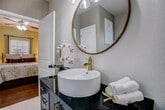 Beautiful home in historic downtown blocks from shopping and restaurants. Two primary bedrooms one upstairs and one downstairs. Cutest guest home with private entrance, two bedrooms, kitchen, and bathroom. Blocks from the Colorado river and parks. The main home has 4 bedrooms and 4 bathrooms. Large dining room and beautiful upgrades and soaking tub. Office and two living rooms with lots of natural light. The covered front porch runs the width of the house with beautiful fans and detailed wood ceilings. Backup generator. The guest house is also listed for lease 2 bedroom and 1 bathroom for $2000 per month.