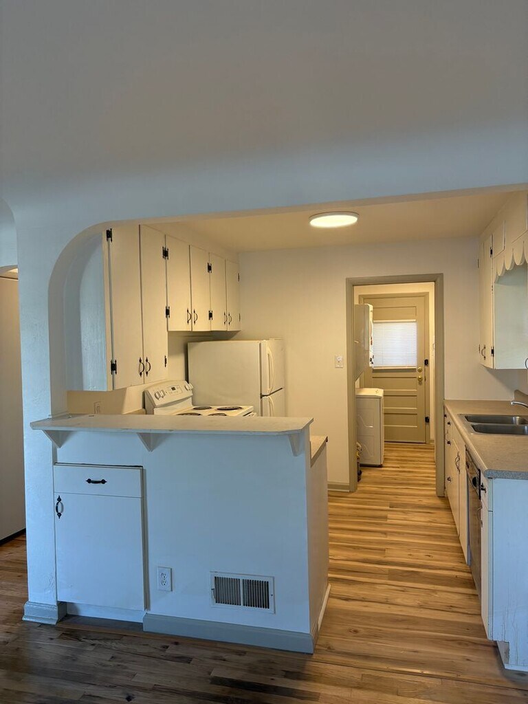 Be the first to enjoy this completely refinished duplex apartment! This charming home features original hardwood floors that have been sanded, stained, and brought back to life, fresh paint in every room, updated light fixtures, and brand-new blinds. The laundry room includes large cabinets for extra storage and a brand-new washer and dryer for your convenience. The bathroom has been remodeled from top to bottom as well. Enjoy a spacious shared yard with plenty of room to relax or garden in the flower beds. Tenant is responsible for all utilities (gas, electric, water, and trash). The home is equipped with central heat; there is no central AC. New vinyl slider windows will be installed in the coming weeks to improve comfort and efficiency. Schedule a showing today by contacting V3 Property Management. | | info@ Please apply on our website, Visit our website for additional available properties as well.