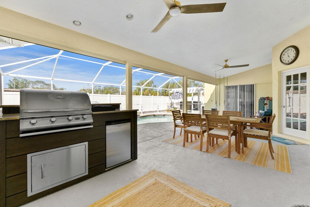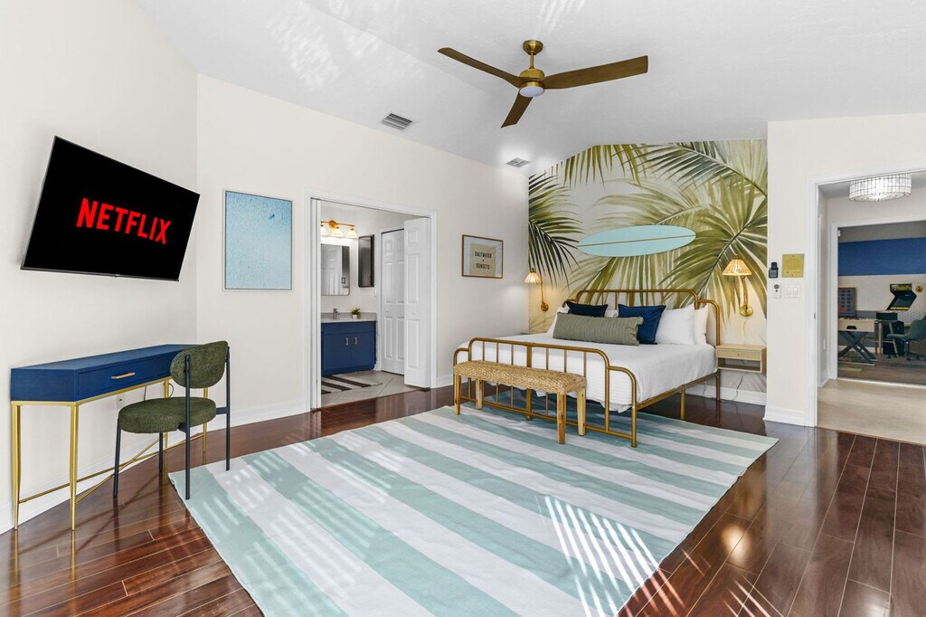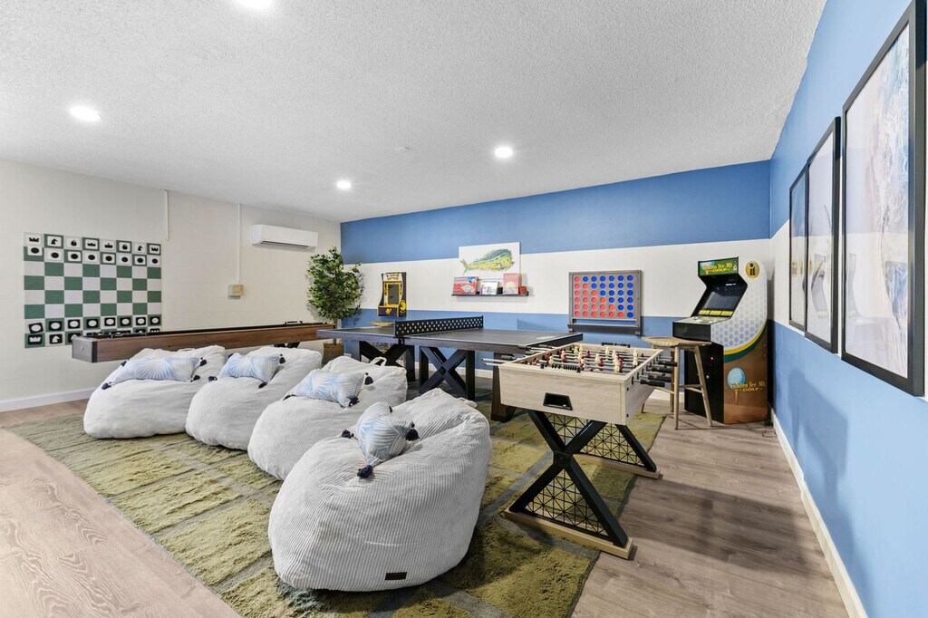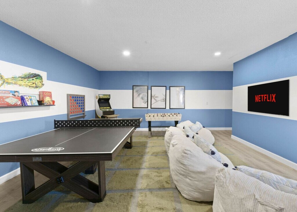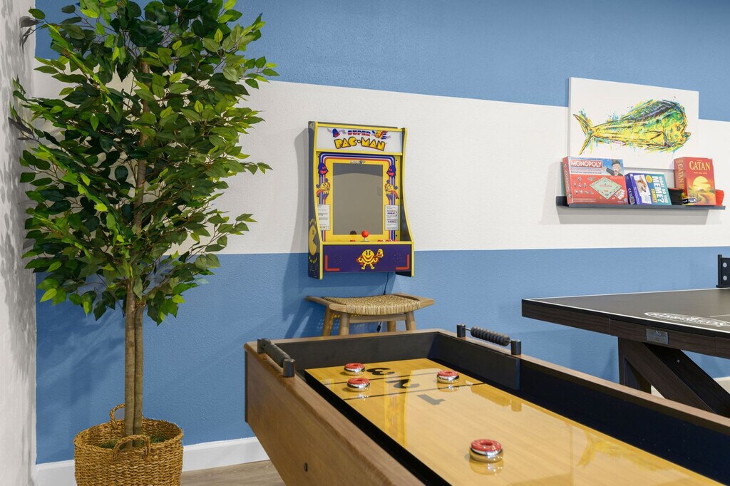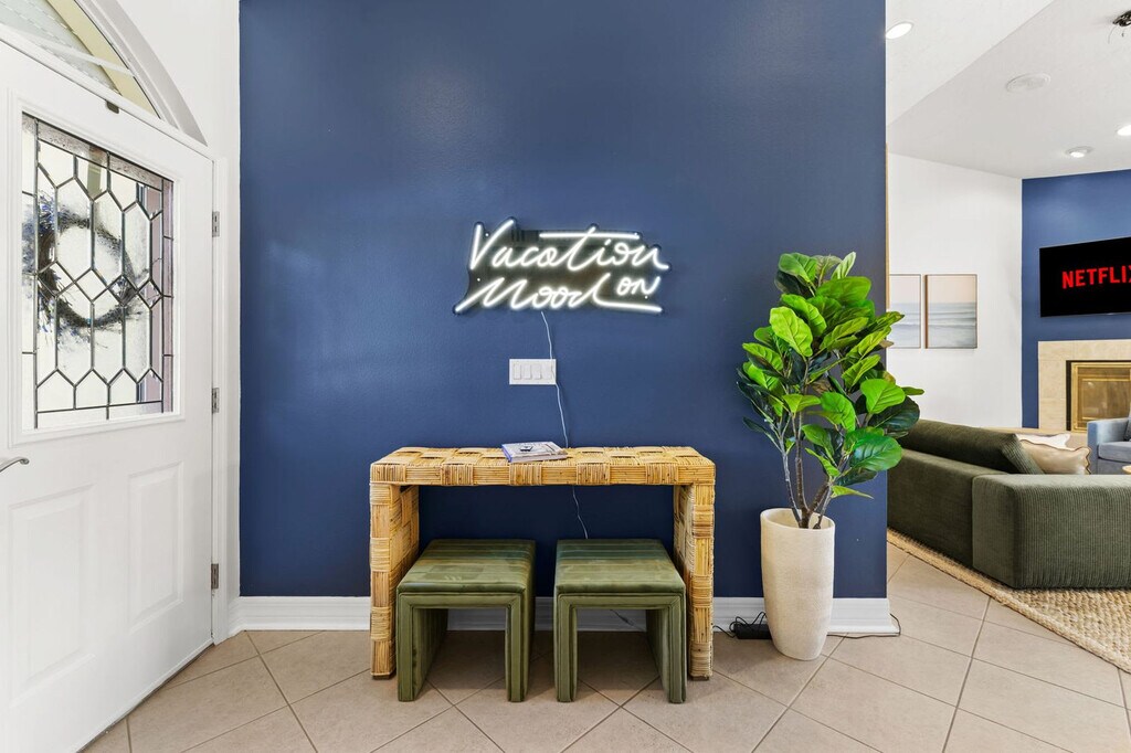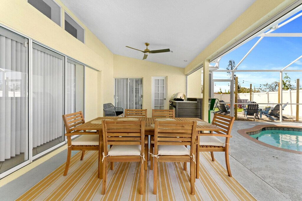 This spacious 5-bedroom, 3-bathroom home in Bradenton, FL, offers an amazing vacation experience with a heated private pool and spa, hot tub, fire pit, outdoor patio and dining area, BBQ grill, and ample parking. The home features a durable metal roof and whole-house solar power for an eco-friendly stay, accommodating up to 12 guests. Each bedroom is equipped with a smart TV, and the living room boasts a 65" smart TV and indoor fireplace. The home is packed with fun amenities, including a game room with arcade games, ping pong table, foosball, and shuffleboard table. The chef’s kitchen is fully stocked with high-end stainless appliances, a large refrigerator, and ample cabinetry and cooking space, along with a coffee maker offering Keurig, French Press, and coffee pot options. The open-floor concept connects the kitchen to the dining area and living room, creating a cozy retreat for relaxation and entertainment. The heated private pool is available for $100 per night and can be heated to about 20-25 degrees above the ambient temperature. Up to 2 dogs are allowed for $125 per stay, with the requirement that dogs are crate trained and picked up after. Parking is available in the driveway for up to 5 cars. Nestled in the peaceful Kristin Subdivision, this home provides easy access to top attractions, shopping, and dining. Nearby beaches include Anna Maria Island, Coquina Beach, Bean Point Beach, and Palma Sola Causeway Park, each offering unique experiences from laid-back island vibes to family-friendly environments and water sports. Explore local attractions like De Soto National Memorial, Robinson Preserve, Palma Sola Botanical Park, The Bishop Museum of Science and Nature, and Riverwalk. Enjoy dining at Pier 22, Anna Maria Oyster Bar on the Pier, The Waterfront Restaurant, Ginny's & Jane E's, and The Donut Experiment. Check-in is at 4pm and check-out is at 10am. No parties are allowed, and violations may result in immediate termination of the stay. An exterior camera is installed solely to monitor the cleaning team for quality and security purposes. Guests must be 25 years or older to book this property. The heated pool requires at least a 3-day notice before arrival and must be heated for the entirety of the stay. A guest verification process is required within 48 hours of booking confirmation, including signing a rental agreement and paying a non-refundable $60 damage waiver, which covers accidental damage during the stay if reported prior to check-out. The home includes a dedicated workspace in Bedroom 1, providing a comfortable area for remote work with a desk and chair. [SI]