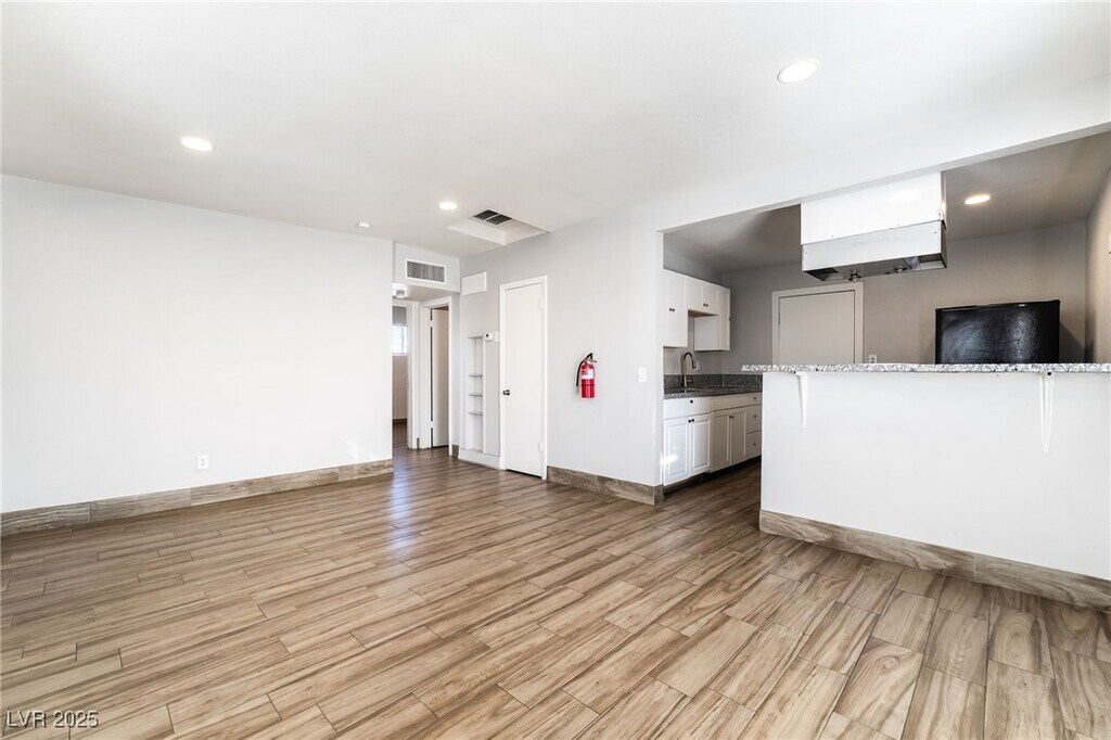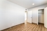 Welcome to your bright and airy home! This charming home boasts elegant wood flooring throughout, accentuating the abundance of natural light that floods each room. The kitchen is a culinary dream with its white custom cabinets and convenient breakfast bar. Two spacious bedrooms offer comfort and relaxation, while the bathroom features a stylish vanity and a soothing shower tub combo. Outside, the expansive concrete backyard provides ample space for outdoor activities, complemented by a convenient carport ensuring shaded parking. Experience comfort and style in this inviting retreat.