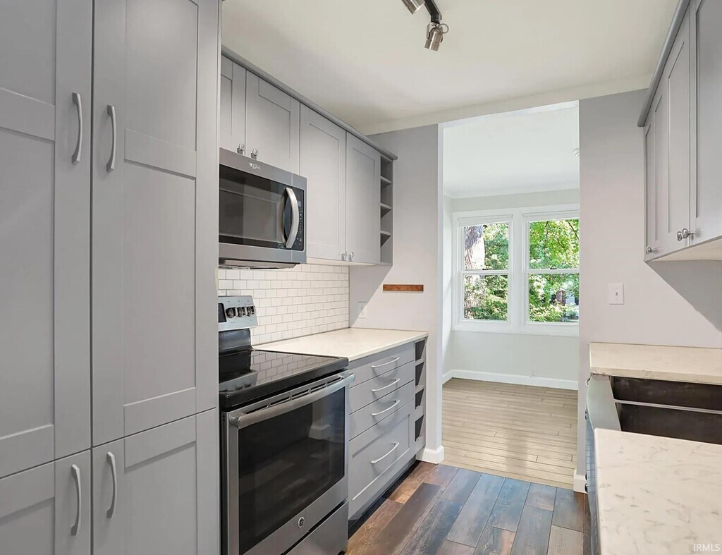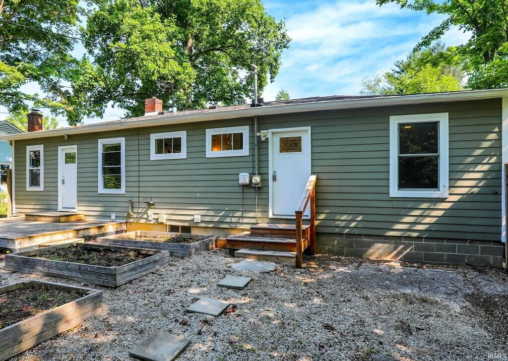 1604 East University is a completely renovated home Located near the corner of East University and Mitchell Street and just a few blocks to Indiana University and less than a mile to Bryan Park and east side attractions. The home has 3 bedrooms, 2 full bathrooms, and office and loads of storage. The kitchen has new cabinets and quartz countertops, and bamboo and tile flooring throughout the home. The home includes: central heating and air-conditioning, dishwasher, garbage disposal, full size refrigerator, electric stove, microwave, washer and dryer. Two back doors lead to a fenced yard and garden area, room for three cars off-street parking accessed by the alley behind the home. The furnace and central air conditioner have been updated with a modern air filtering system including an iWave air purifier. MLS ID 202608311