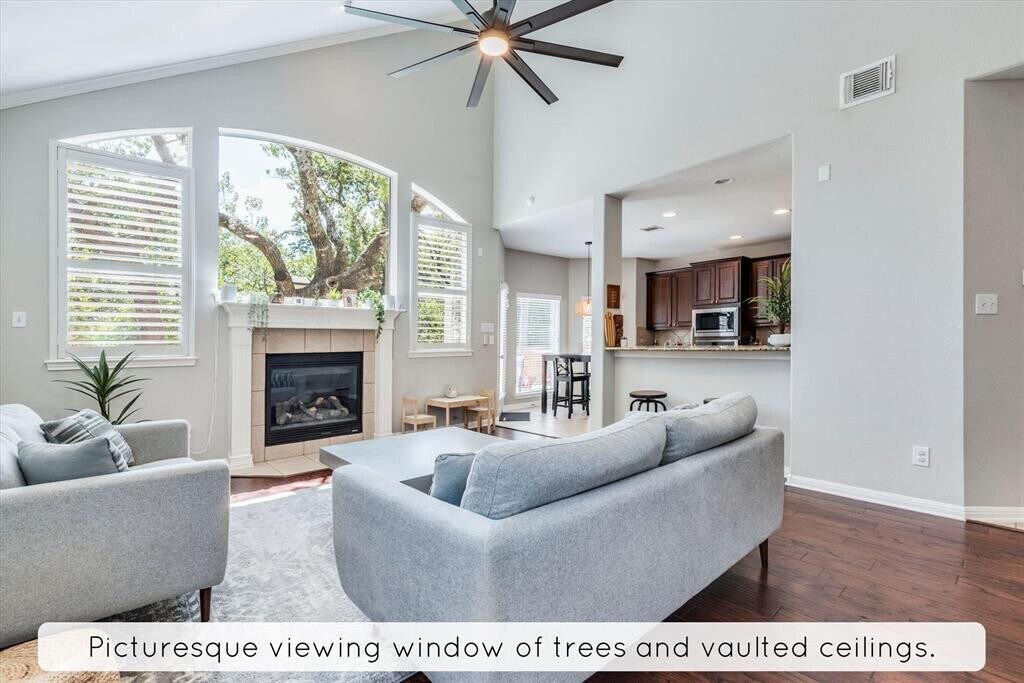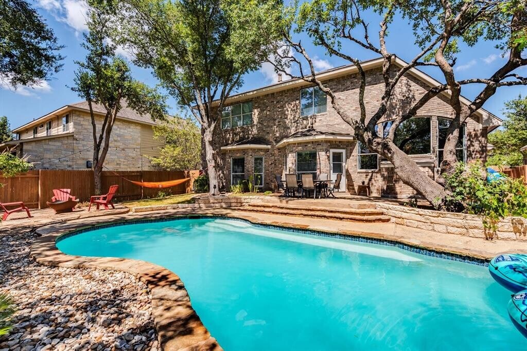 RARE 3000+ sqft rental home with HEATED POOL! Breath-taking curb appeal is only the beginning of this incredible home nestled on a half circle of Buttercup Creek built by Newmark Homes. Excellent size to go with a functional floorplan and 4 bedrooms PLUS office or 5th bedroom. ALL INCLUDED: Refrigerator, Washer, Dryer, large leather couch, Dyson vaccuum, 2 bed sets, outdoor loungers, front table and chairs, Echo Show, commercial fan, and more! TWO BRAND NEW Trane HVAC systems with Honeywell UV Air Filtration! 2025 Roof! This home features a beautiful living room with wood floors, vaulted ceiling, and picturesque window scene of trees over the gas fireplace. Large primary suite is downstairs with soaking tub and separate shower. Expansive second floor with large gameroom, desk area, 3 split bedrooms, and a jack and jill bathroom. The backyard is where this home really stands apart. An oasis-like pool area with a large swimming pool with waterfall surrounded by soaring shade trees. A patio and hammock between the trees with a separate firepit area on crushed granite and flagstone. 4-side brick with a 2.5 car garage are among other perks of your future home. A mere 250 feet from the amenity center with pool, splash pad, playground, picnic areas & nature trails! Close to 1890 Ranch Shopping, Costco, many restaurants, Target, H-E-B, Cedar Park Medical Center, Whole Foods Market, and more! *$300/month pool maintenance fee. If tenant has history of pool maintenance and is capable of managing pool, maintenance fee can be waived.*
