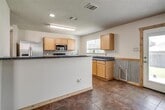 Step inside to find warm, wood-look flooring that flows through the spacious main living area. The open-concept layout offers a surprisingly roomy feel, making it ideal for both everyday living and entertaining. The kitchen seamlessly connects to the living and dining areas, creating a welcoming space for gatherings with friends and family. Recent updates include the HVAC system installed just 2–3 years ago, keeping you comfortable year-round—especially during those hot Texas summers and freshly painted exterior trim to provide that fresh new home look.