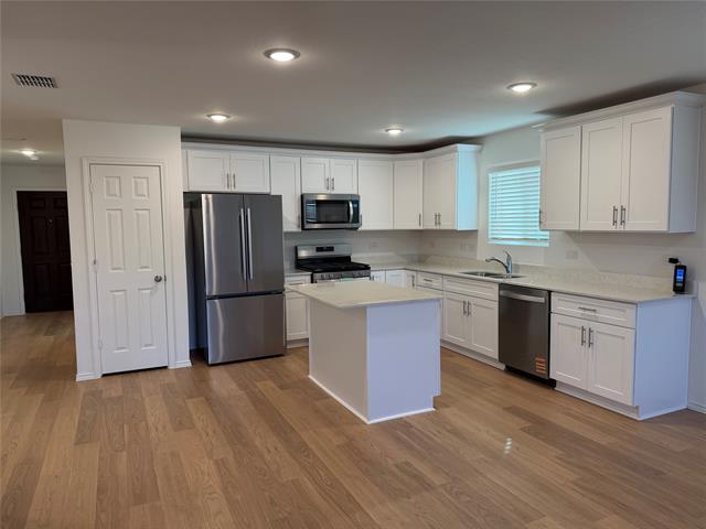 Located in Northwest ISD and zoned to great schools, this home offers both comfort and functionality. The spacious living room provides an inviting area for relaxing or entertaining, while durable vinyl flooring flows throughout the main living spaces, with carpeted bedrooms for added comfort. The kitchen is a standout, featuring granite countertops, a center island, and a gas range—ideal for everyday cooking and hosting. Granite countertops continue in all bathrooms, including the primary bath with dual sinks for added convenience. Generously sized bedrooms include walk-in closets for ample storage, and the large backyard offers plenty of space for outdoor living, play, or future entertaining. Refrigerator, washer, and dryer all convey with the home, making this property truly move-in ready.