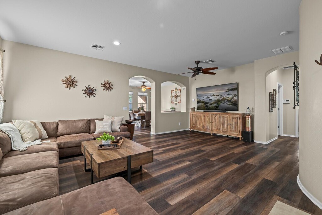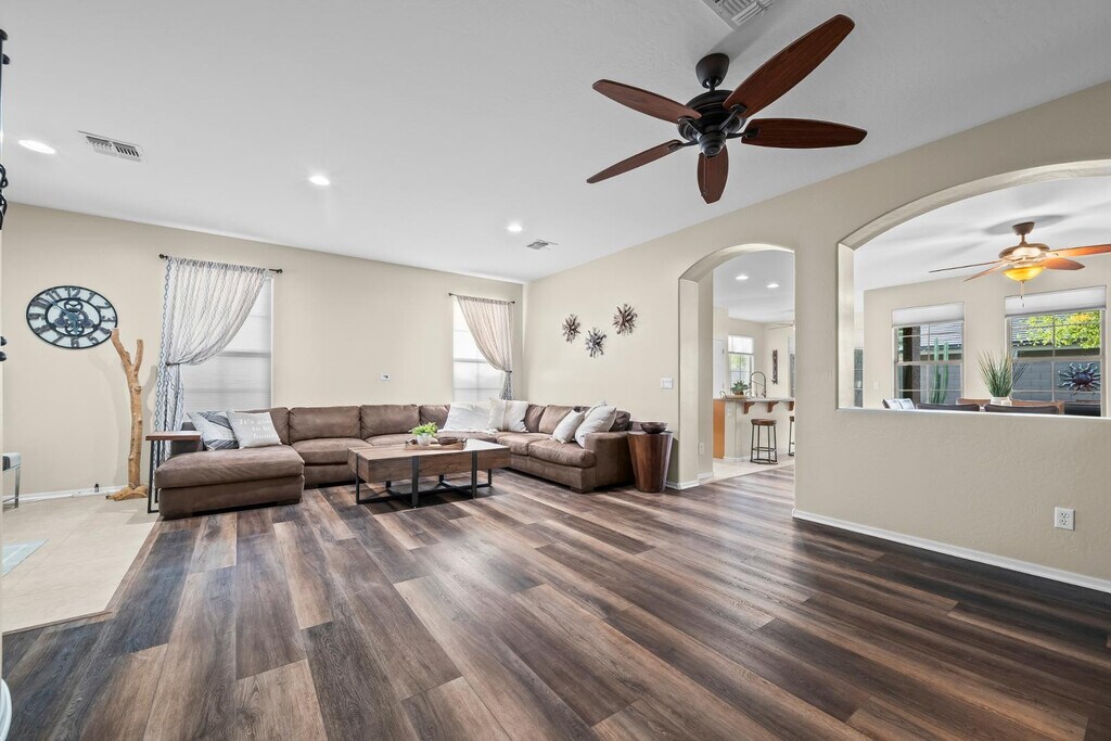 Enjoy what Arizona has to offer in this Furnished 4 bedroom 2 bathroom split floor plan home. RV Gate,2 Car Garage,Furniture Included Throughout! Located near top rated schools,premier shopping,Goodyear Recreation Campus,and close to I-10 & 303. Home Features outdoor living space with expansive brick patios,artificial turf,mature landscaping,outdoor firepit,& BBQ grill. Inside opens up to an ensuite primary bedroom with plenty of light,separate shower & tub,and walk-in closet. Three additional bedrooms in the front of the home with expansive second bathroom. Kitchen with gas range and all appliances including refrigerator,washer,and dryer. Garage for 2 Cars and 10ft RV Gate for extra parking. (HOA restrictions apply). Check out this beautiful property to make it your next AZ home! MLS ID 7017974