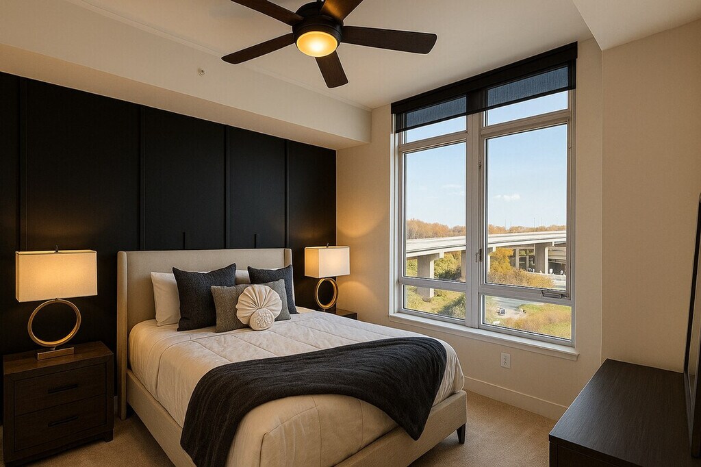 Feel at home in this stunning 2-bedroom, 2-bath apartment in Tysons, featuring a private balcony with city views. This apartment offers a fully equipped kitchen and modern comforts. The master suite includes a king-size bed and en-suite bath, while the second bedroom features a queen-size bed. The building provides access to a fitness center and a 24/7 concierge. Parking is available in the building garage for $45 per day per vehicle, with monthly options available. Pets are welcome for a fee of $25 per night per pet, with a maximum of $350 per month per pet. This apartment is centrally located near shops, dining, and transit. [SI]